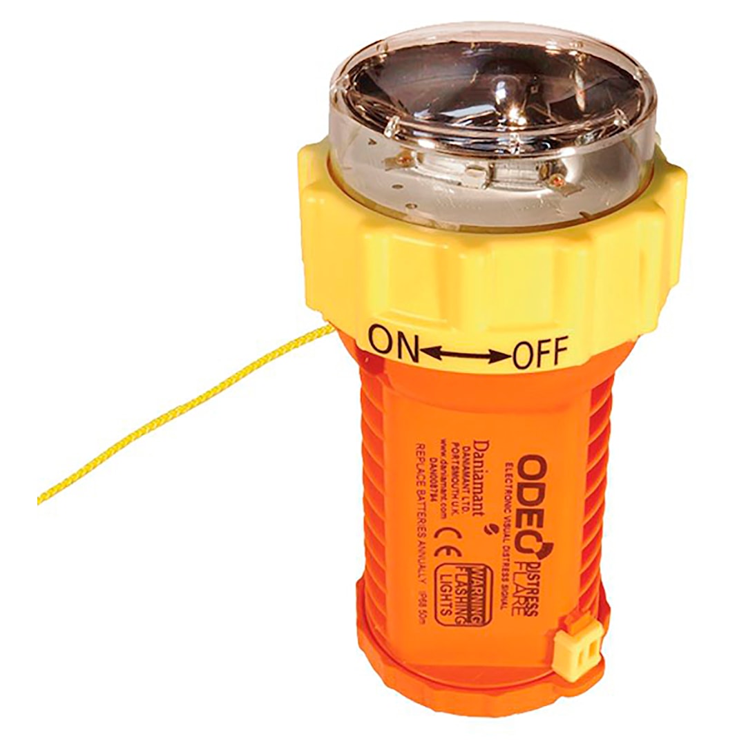 Kelluva LED-soihtu toimii 9 tuntia 4 x AA 91L Litium -paristoilla. Turvallinen käyttää. Vesitiivis IP68/100 metrissä tunnin ajan. Punainen LED-valo, SOS-signaali.Perinteiset soihdut valaisevat noin 30 sekunnin ajan ennen sammumista. Odeo Distress valaisee noin 8 tunnin ajan. Koska valaisu ei perustu pyrotekniikkaan, ovat Odeo-tuotteet päälle kytkettynä täysin turvallisia. Soihtua voi kuljettaa myös lentomatkatavaroiden mukana lennoilla, koska voimanlähteenä on litiumakku tai alkaliparistot.Tärkeimmät ominaisuudet:• Ei kuumene, ei avotulta tai liekkejä – ei riskejä• Ei räjähtäviä yhdisteitä tai ongelmajätteitä• Erittäin turvallinen käyttää• Pidempi toiminta-aika – nyt 8 tuntia, eli 25% pidempään kuin ODEO Mk3• Mukana nyöri• SAR-turvallinen• Ihanteellinen sukellussovelluksissa: testattu 75m syvyyteen saakka• Kelluu• Helppo paristojen vaihto• Sisältää nyt myös IR LED:in NVG-SAR-etsintöjen helpottamiseksi• SoS-signaali sisäänrakennettuna• Pieni ja kompakti (nopeasti mukaan otettavissa hätätilanteisiin)• Helppo aktivointi (jopa märin käsin tai hanskat kädessä)• Kaksoistoiminto: nopea vilkku ja SoS-autosignaaliTyypillinen käyttötapaAlun perin merikäyttöön suunniteltu, mutta soveltuu kaikenlaisiin ulkoilmasovelluksiin pienen kokonsa ja keveytensä ansiosta. Pienempi koko tekee ODEO Distress -mallista ihanteellisen välineen vuorikiipeilyyn, hiihtämiseen, melontaan, tutkimusretkille jne. Poistaa tarpeen kantaa mukana hätäsoihtuja – ei vaaraa tulipaloista tai metsäpaloista. ODEO Distress:in pieni koko ja vesitiiviys IP68 (50 m) tekee siitä ihanteellisen välineen myös sukellukseen.VirtalähdeOdeo Distress toimii 4 x L91 litium-paristoilla tai 4 x alkaliparistoilla. Näiden paristojen varastointiaika on erittäin pitkä ja niiden kapasiteetti ja lämpötilankesto mahdollistavat pitkän toiminta-ajan myös äärimmäisissä lämpötiloissa.Vaatimustenmukaisuus ja standarditOdeo Distress on suunniteltu täyttämään SOLAS-vaatimukset, minkä vuoksi se on todella hyvä vaihtoehto perinteisille soihduille. Yhdysvaltain Rannikkovartiosto on nykyään johtava eVDSD-signalointilaitteiden (Electronic Visual Distress Signal Device) standardien kehittäjä. Näitä laitteita käytetään korvaamaan perinteiset pyrotekniset soihdut. Odeo Flare™ on varustettu automaattisella valmiiksi ohjelmoidulla SOS-signaalilla vilkkujaksotuksen osalta (siten kuin on määritetty standardissa Annex 4 /COLREGS), joten se täyttää kansainvälisten standardien vaatimukset.