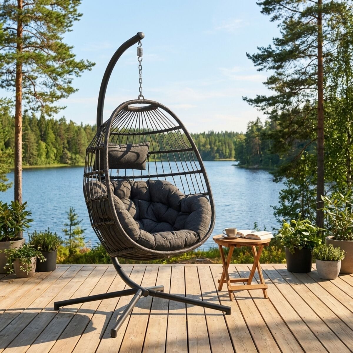 Olivia riipputuoli on täydellinen paikka rauhoittua hetkeksi ja antaa arjen lipua ohi. Sen ilmava, kevyesti kaartuva muoto tuo terassille rennon ja kutsuvan tunnelman, jossa tekee mieli viipyä pidempäänkin. Tukeva, maalattu teräsrunko antaa riipputuolille vakaan perustan, kun taas alumiinista, polyrottingista ja narusta valmistettu kori pitää kokonaisuuden kevyenä ja helposti siirreltävänä. Mukana tulevat muhkeat tummanharmaat pehmusteet viimeistelevät istuinmukavuuden ja tekevät tuolista houkuttelevan paikan. Olivia riipputuoli toimitetaan osissa, ja se on helppo koota käyttöön. Tarvittaessa sen saa myös purettua kätevästi talvisäilytystä varten, mikä tekee siitä käytännöllisen valinnan Suomen vaihteleviin vuodenaikoihin. Suosittelemme sijoittamaan riipputuolin katettuun ulkotilaan, kuten terassille tai parvekkeelle. Näin suojaat teräsrunkoa ko…