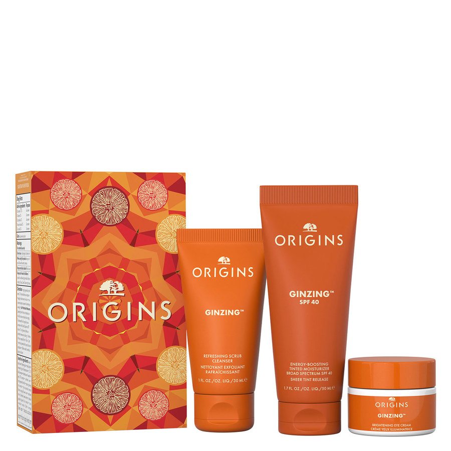 Originsin Ginzing Protect & Glow Set on setti tuotteita, jotka suojaavat sekä antavat iholle hehkua ja energiaa. Huolella valittu setti sisältää matkakokoisen puhdistusaineen sekä täysikokoiset Origins SPF40 Tinted Moisturizer -kosteusvoiteen ja merkin myydyimmän silmänympärysvoiteen.