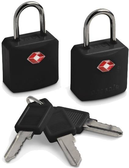 Kaksi TSA-hyväksyttyä pikkulukkoa.