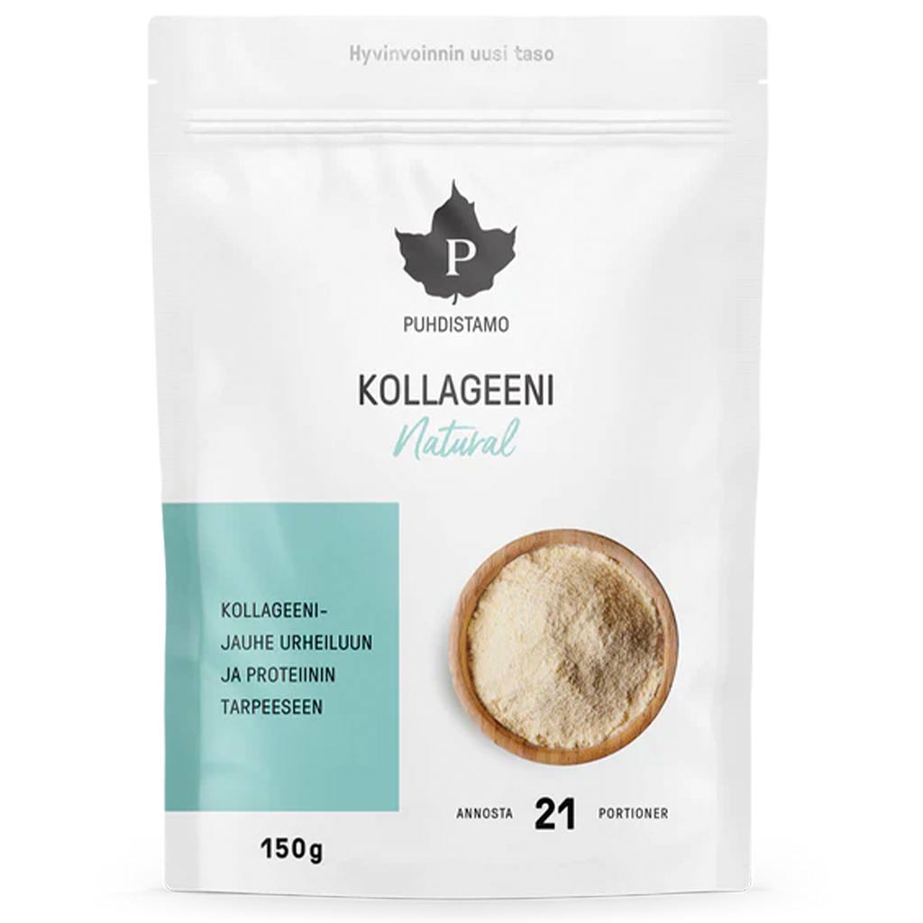 Neutraalinmakuinen kollageeni .Puhdistamo Kollageeni – Natural sopii kahviin, smoothieen tai vaikka sellaisenaan veteen sekoitettuna. Tämä tehotuote tukee muun muassa lihasten kasvua. Siksi se onkin erinomainen muun muassa treenin tueksi ja sopii täydellisesti myös ketogeeniseen ruokavalioon. Sen neutraalin maun ansiosta voit lisätä sitä esimerkiksi kahvin tai minkä tahansa nesteen joukkoon. . . Kollageeni Natural sisältää markkinoiden laadukkainta ja tieteellisesti tutkituinta naudankollageenia Saksasta. Tuote sisältää useampaa korkealuokkaista raaka-ainetta ympäri maailman, ja ne sekoitetaan herkulliseksi ja tasapainoiseksi jauhesekoitukseksi Puhdistamon toimitiloissa Lempäälässä. . . Pakkauskoko: 150g .
