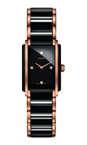 Rado Integral Diamonds R20612712, naisten rannekello timanteilla Mallinumero: R20612712Rungon koko: 22.7 x 33.1 mmPaino: 74 gRungon materiaali: keraaminen, ruostumaton teräsRannekkeen materiaali: keraaminen, ruostumaton teräsRannekkeen väri: musta, rosekultaKellotaulun väri: musta, rosekultaSafiirilasiVedenkestävyys: 50 m (5 bar)Päivyri4 timanttia, yht. 0.026 ctKvartsikello