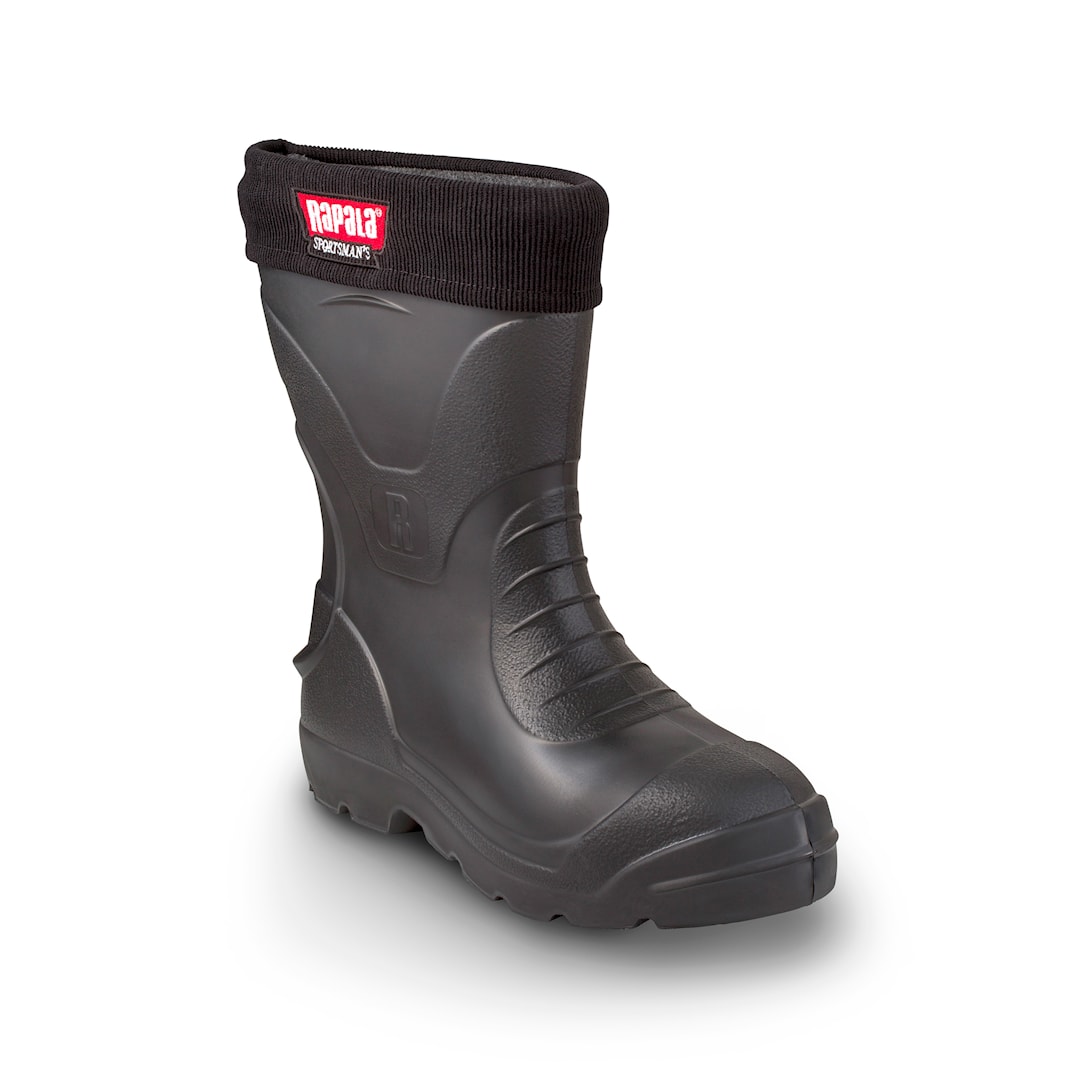 Rapala Sportman’s Medium Short -30C on lyhyt vartinen lämpöeristetty saapas. Vartensa ansiosta tämä kevyt kenkä on helppo pukea ja riisua. Huopasisävuoren voi tarvittaessa irrottaa.EVA-solumuoveissa on eroa!Rapala®-lämpösaappaissa käytetään eurooppalaista huippulaadukasta EVA-kevytsolukumia, joka ei haurastu, lohkea tai kovetu pakkasessa. Rapala®-lämpösaappaat valmistetaan EU:n alueella sijaitsevissa tehtaissa.Kalastaja käyttää vuoden aikana useampia erilaisia kenkiä harrastuksessaan. Olosuhteista vaativin on talvi – Suomen talvessa kenkien tulee olla riittävän lämpimät ja luonnollisesti vesitiiviit. Paras mahdollinen materiaali talvikalastajan kenkiin on EVA (etyylivinyyliasetaatti) -kevytsolukumi. EVA on erittäin kevyttä ja hyvän lämmönerityskyvyn omaavaa materiaalia. Rapala® -talvisaappaat ovat lisäksi täysin saumattomia ja 100 % vesitiiviitä. Lämmönerityskyky viimeistellään sisähuovilla. Ne ovat irrotettavat, joten niiden kuivaaminen on helppoa.Mitoitus:Valitse normaalia kenkäkokoasi 1-2 numeroa suurempi koko.