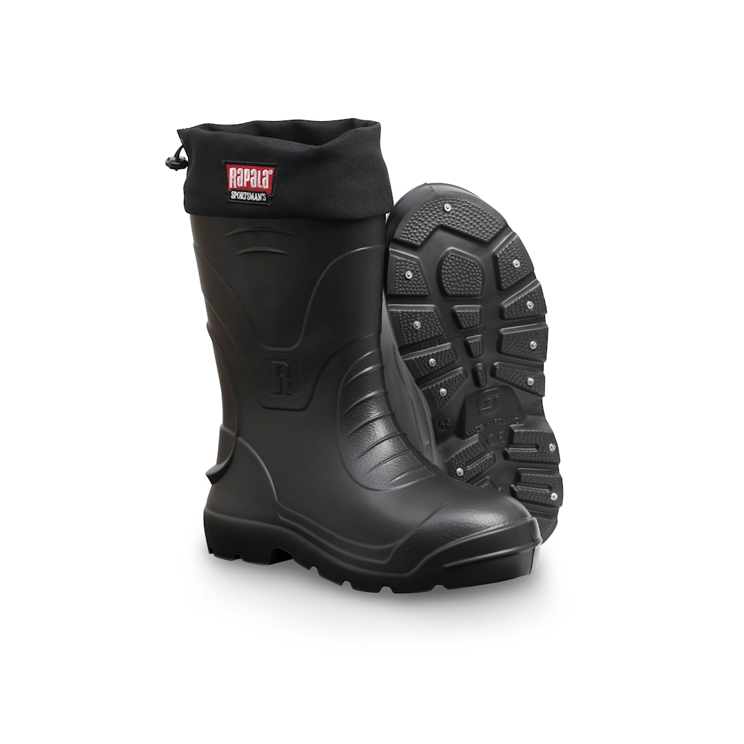 Suosikkisaapaasta saatavissa nyt myös kaivattu nastallinen versio!Rapala Sportsman´s R-Grip talvisaappaat on varustettu kiinteillä R-Grip nastoilla, jotka tekevät liukkailla ja jäisillä keleillä liikkumisen todella helpoksi! Saapas on valmistettu erittäin kevyestä EVA materiaalista ja sen nopeasti kuivuvat pohjalliset ovat irroitettavat. Lyhyt varsi tekee saappaasta monikäyttöisen ja helpon vetää jalkaan. Varren yläreunassa on säädettävä kaulus ja lumilukko. Pakkasenkesto -30C.• Kiinteät R-Grip nastat• Kevyt EVA materiaali• Irroitettavat pohjalliset• Säädettävä kaulus ja lumilukko• Pakkasenkesto -30CEVA-solumuoveissa on eroa!Rapala®-lämpösaappaissa käytetään eurooppalaista huippulaadukasta EVA-kevytsolukumia, joka ei haurastu, lohkea tai kovetu pakkasessa. Rapala®-lämpösaappaat valmistetaan EU:n alueella sijaitsevissa tehtaissa.Mitoitus:Valitse normaalia kenkäkokoasi 1-2 numeroa suurempi koko.