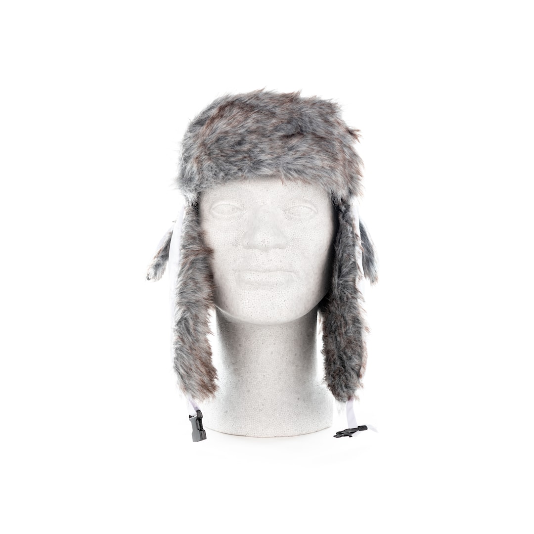 Tyylikäs ja lämmin karvahattu keinoturkisvuorilla. Alaslaskettavat korvaläpät, jotka saa kiinnitettyä leuan alle tai hatun päälle.