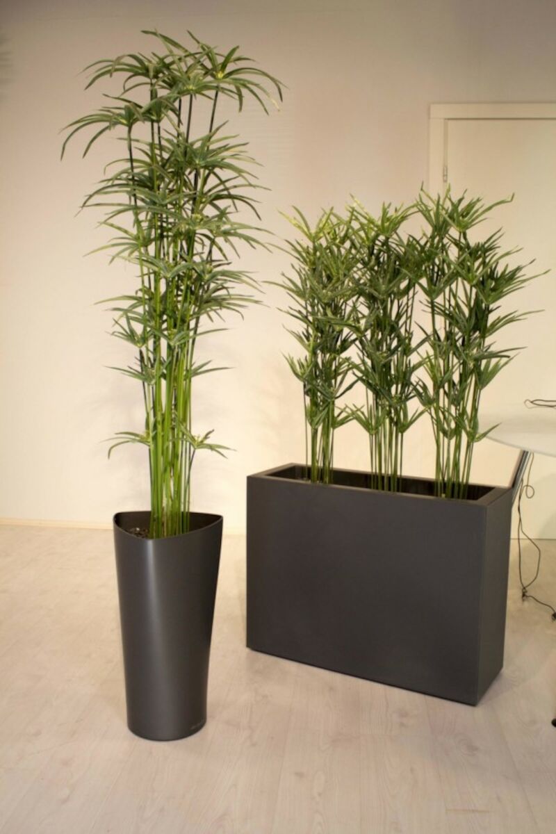 Kaunis tekokasvi Sädekaisla Cyperus. Lehtien lukumäärä kasvissa on 22kpl. Tuote toimitetaan pienessä mustassa istutusruukussa.