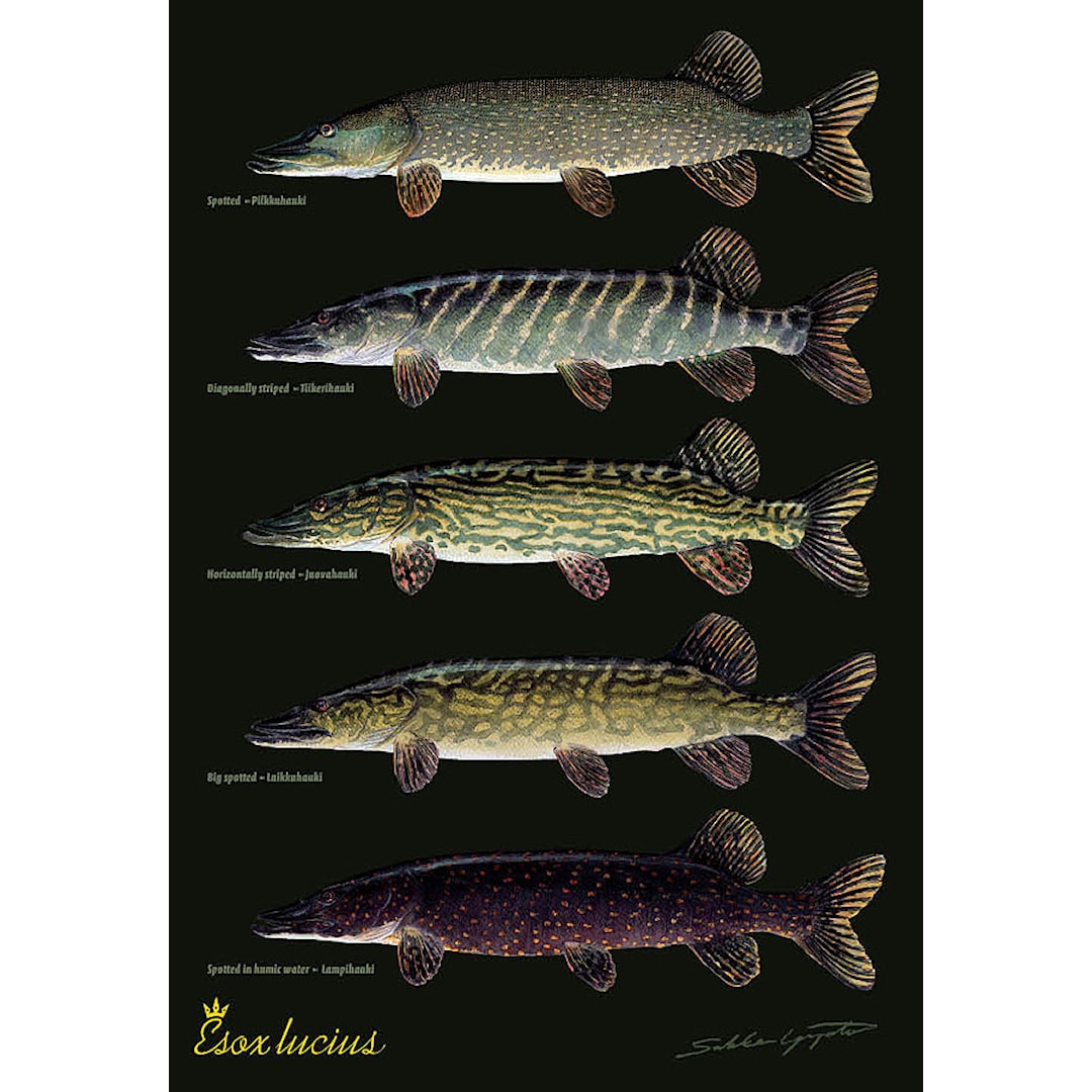 Mahtava lahjaidea tai laita vaikkapa seinälle kehyksiin! Intohimoinen kalamies ja taiteilija Sakke Yrjölä on kuvittanut nämä yksityiskohtaiset kortit!• Kortit on painettu tukevalle (300g) korttikartongille ja ne on suojalakattu• Painettu Suomessa• 21×29 cm”Rakastuin jo lapsena rubiinisilmäisten särkien ja platinasuomuisten salakoiden kauneuteen. Niitä ongittiin ja syötiinkin. Kalojen upeat detaljit tulivat tutuiksi. Vapaa-aikani kului luonnossa vesien äärellä ja lajioppaita tutkien. Sundmanin ja Wrightien tekemät kalakuvat uivat uniini. Keittiön seinällä komeili Erik Bruunin lohitaulu. Kalojen piirtäminen jäi kuitenkin vain pariin kokeiluun.Myöhemmin opiskeltuani alaa ja toimittuani ammatissa innostuin yhdistämään intohimoni ja aloin tuottamaan kalakuvia. Parin vuoden harjoittelun ja ensimmäisen näyttelyni jälkeen oli aika ottaa seuraava askel ja lähteä maalaamaan kaikki maassamme esiintyvät kalalajit uuteen Suomen kalat -kirjaan. Tuotteeni ovat tämän prosessin hengentuotteita. Ne on tehty kertomaan vedenalaisen luontomme moninaisesta kauneudesta ja valistamaan uusia sukupolvia pitämään huolta ainutlaatuisista arvokkaista vesistöistämme. Tuotteeni on valmistettu Pohjois-Helsingissä pääosin kotimaisille materiaaleille. Lähituotanto varmistaa hyvän laadun ja pienentää energian kulutusta.” -Sakke Yrjölä