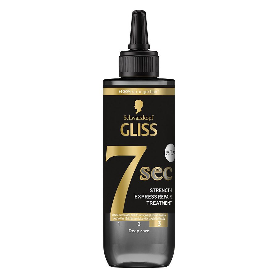 Schwarzkopfin Gliss 7 Sec Repair Treatment Ultimate Repair -hoitoneste hoitaa ja palauttaa vahingoittuneiden hiusten elinvoiman. Ainutlaatuinen koostumus antaa hiuksille niiden tarvitseman hoidon vain seitsemässä sekunnissa.