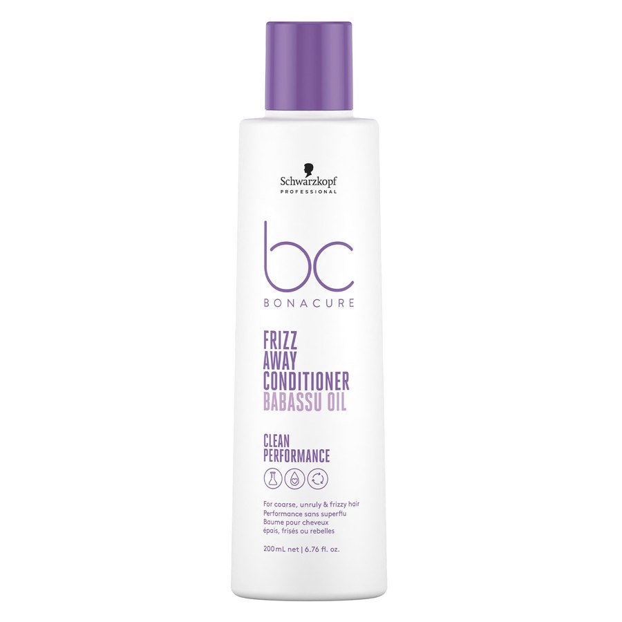 Schwarzkopf Professionalin BC Frizz Away Conditioner -hoitoaine taltuttaa tehokkaasti kurittomat, karheat ja pörröiset hiukset.