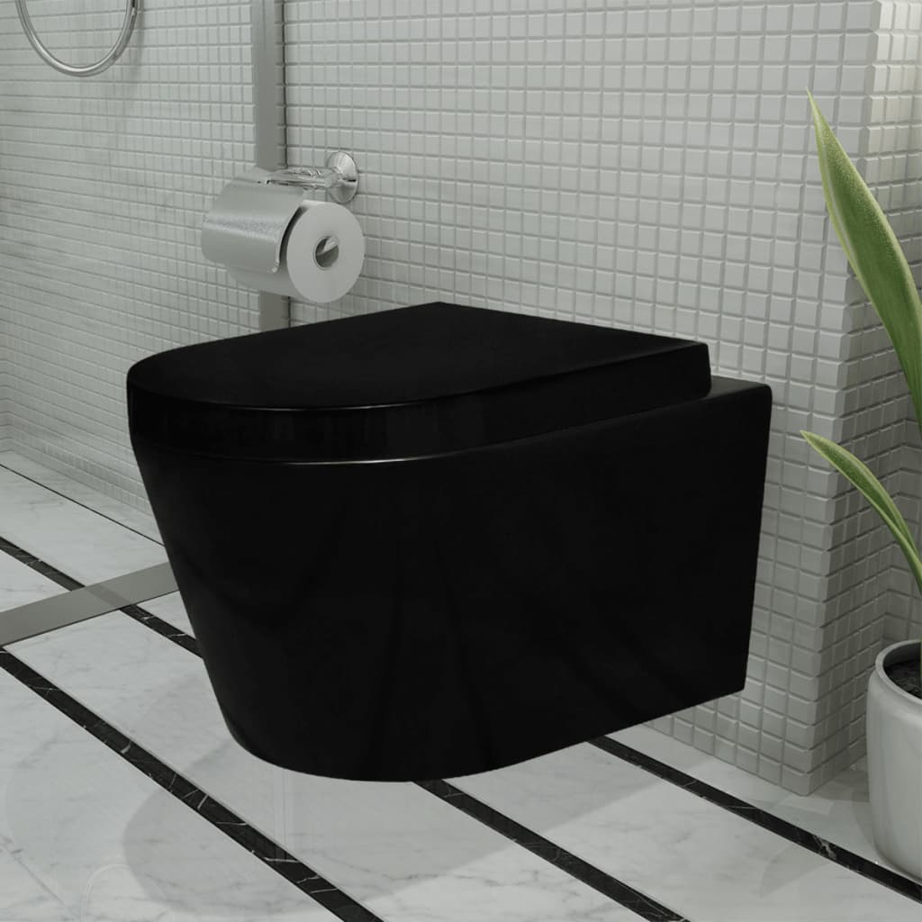 Tämän keraamisen WC:n muotoilu on ajaton ja se on varustettu piilotetulla vesisäiliöllä. Se varmasti täydentää jokaisen kylpyhuoneen tyylin! WC-istuimen Soft Close-mekanismi takaa, että kansi sulkeutuu pehmeästi kolahtamatta. Ainutlaatuisen muotoilun ansiosta se tarjoaa mukavuutta korkeimmalla tasolla! Koska se on valmistettu laadukkaasta keramiikasta, WC in kestävä ja helppo puhdistaa. Sisällytetty helposti asennettava WC-säiliö on varustettu kahdella huuhtelupainikkella veden säästöä varten!Pientä painiketta voidaan asettaa 3 tai 4,5 litraan, kun taas suurta painiketta 6 tai 9 litran huuhteluun. Sekä korkeus että seinän etäisyys on säädettävissä näin, että se voidaan asentaa lähes mihin tahansa. Toimituksessa mukana: 1 x WC-pönttö, 1 x Istuin, 1 x Vesisäiliö asennussarjalla. Ole hyvä ja ota huomioon, että säiliön asennustarvikkeet ovat mukana, kun WC:n seinäkiinnikkeet eivät ole mukana. WC Materiaali: Keramiikka Väri: Musta Mitat: 34,5 x 52 x 37 cm (L x S x K) Varustettu Soft Close-mekanismilla Helposti puhdistaa Huuhtelusäiliö: Vesisäiliön tilavuus: 11 L Asennuskorkeus: 102 – 117 cm Asennusetäisyys: 18 – 23 cm Viemärin halkaisija: 9 – 11 cm Mitat: 107 – 120 x 41 x 14 cm (K x L x S) 2 huuhtelupainiketta Toimituksessa mukana: 1 x WC-pönttö 1 x Istuin 1 x Vesisäiliö asennussarjalla Helppo asennis ja liitäntä