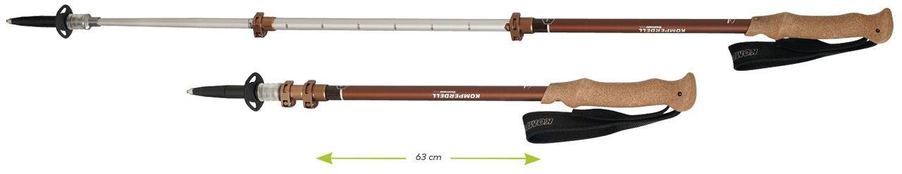 Jousitetuilla kärjillä varustetut laatusauvat korkkikahvoin, lyhyempi malli.