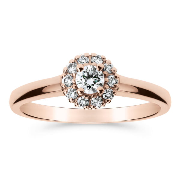 Kaunis rosekultainen Silván Lauriel timantti-halosormus Upeassa halo-mallisessa Silván Lauriel -timanttisormuksessa keskitimanttia ympäröi pienemmät timantit. Timanttien yhteispaino on 0,23ct ja mukana tulee Silván-aitoustodistus. Silván Lauriel -halosormuksen runko on valmistettu kokonaan 14 karaatin kierrätetystä kullasta. Halosormus on ajaton valinta, jonka eleganssi ei himmene vuosien saatossa. Silván halosormus sopii mihin tahansa asukokonaisuuteen ja on upea muistutus ikuisesta rakkaudesta. Tämä upea sormus sopii täydellisesti Silván-sivusormuksen pariksi. Tuotetiedot Tuotenumero: 00163223ROSEMateriaali: 14K rosekultaTimantti (valittavissa): luonnontimantti tai laboratoriotimanttiTimantit: Yhteensä 0,23ctTimanttien väri: HTimanttien puhtaus: VSTimanttien hionta: BrilliantTimanttikorun aitoustodistus: KylläRungon profiili: PuolipyöreäValmistettu Suomessa Kotimaiset Silván-korut Kotimaiset Silván-korut valmistetaan käsityönä Hyvinkäällä, Laatukorun omalla kultasepänverstaalla. Kaikki korumme on valmistettu kestämään jokapäiväistä käyttöä. Tarjoammekin Silván-koruillemme elinikäisen tuotetakuun valmistusvirheiden osalta. Silván-korujen laadukkaat timantit ovat huolellisesti luokiteltuja painon, värin, puhtauden sekä hionnan mukaan, ja niiden alkuperä on jäljitettävissä. Käytämme vain konfliktivapaita timantteja, jotka ostamme alan standardeihin sitoutuneista eurooppalaisista timanttipörsseistä. Silván-timanttisormuksen mukana toimitetaan aina aitoustodistus. Vastuullisten ja laadukkaiden timanttien lisäksi Silván-koruihin käytetystä kullasta 100-prosenttia on kierrätettyä. Silván-timanttikorut valmistetaan tilauksesta juuri sinulle, joten niiden toimitusaika on yleisimmin 5–8 arkipäivää. Kaikkia Silván-koruja voidaan myös muokata verstaallamme erikoistilaustyönä. Tässä tapauksessa olethan yhteydessä asiakaspalveluumme. Huomioithan, että kaiverretulla sormuksella tai erikoistilaustyönä valmistetulla tuotteella ei ole vaihto- tai palautusoikeutta. Silván. Ikuista. Suomalaista. Katso kaikki vihkisormukset
