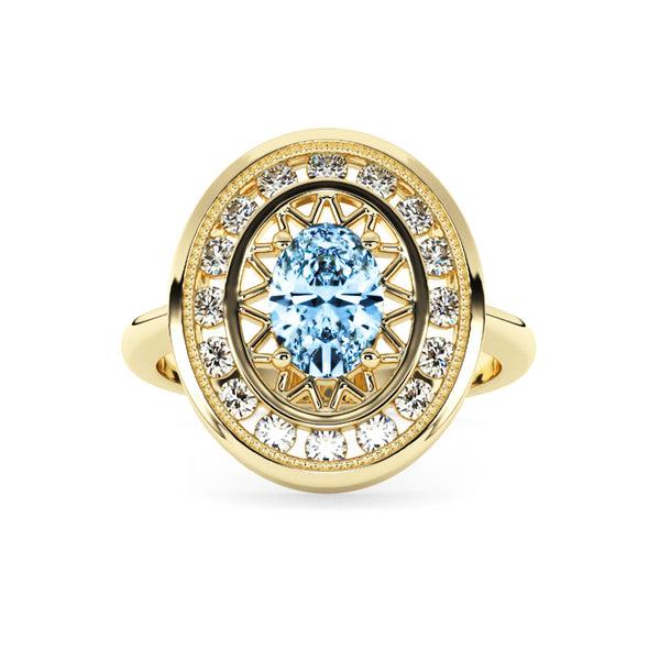 Vintage-tyylinen Silván Carmosier timanttisormus sinisafiirilla, Armi-mallisto Silván Armi sormuksen inspiraation lähteenä ovat monet suomalaiset tunnetut naisvaikuttajat. Voimakkaiden, luovien, herkkien ja tunteikkaiden naisten läsnäolo hehkuu Armin muotokielessä. Nykypäivän naisten itsenäisyys sekä omaan tahtoon perustuvat elämänvalinnat näkyvät sormuksen pyöreässä muotoilussa ja sen yksityiskohtaisessa viimeistelyssä. Ovaalin keskikiven hennon sininen väri sinetöi suomalaisen luovuuden, pehmeyden ja ajattoman designin. Mallisto: Silván ArmiMateriaali: 14K keltakultaRungon profiili: PuolipyöreäTimantit: Yhteensä 0,32ct, yksittäisen timantin koko 16kpl 0,02ctKeskikivi: 7mm x 5mm sinisafiiri Timanttien väri: HTimanttien puhtaus: VSTimanttien hionta: BrilliantTimanttikorun aitoustodistus: KylläTuotenumero: 001615SA32KK Katso koko Silván-timanttisormusvalikoima täältä!Silván. Ikuista. Suomalaista.