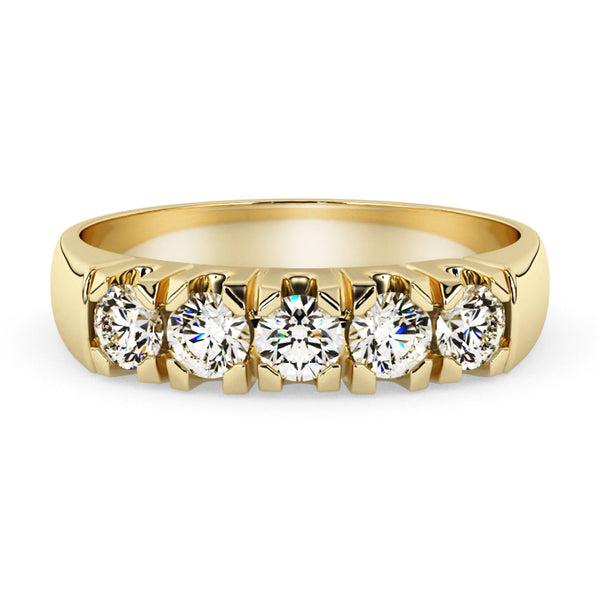 Näyttävä Silván-rivitimanttisormus keltakultaisena Materiaali: 14 KA KeltakultaRungon profili: PuolipyöreäTimantit: Yhteensä 0,50ctTimanttien puhtaus: VSTimanttien väri: HTimanttien hionta: BrilliantTimanttikorun aitoustodistus: KylläTuotenumero: 13200550KK Huomioithan, että sormuksen mallikuva on havainnollistava, ei mittakaavassa. Katso kaikki Silván -timanttikorut ja vihkisormukset täältä