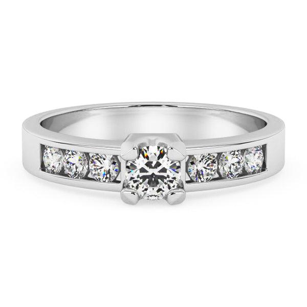 Upea Silván vihkisormus valkokultaisena Materiaali: 14KA valkokultaRungon profiili: flakkaTimantit yhteensä: 0,33ctTimanttien koot: 1 x 0,15ct, 6 x 0,03ctTimanttien puhtaus: VSTimanttien väri: HTimanttien hionta: BrilliantTimanttikorun aitoustodistus: KylläTuotenumero: 00150233VK Silván-timanttikorut valmistetaan Laatukorun verstaalla Hyvinkäällä. Huomioithan, että toimitusaika timanttisormuksillamme on 5-8 arkipäivää tilauksesta.