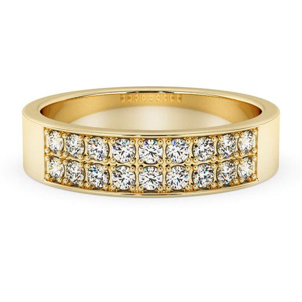 Silván keltakultainen sormus timanteilla Materiaali: 14K keltakultaRungon profiili: FlakkaTimantit: Yhteensä 0,36ctTimanttien puhtaus: VSTimanttien väri: HTimanttien hionta: BrilliantTimanttikorun aitoustodistus: KylläTuotenumero: 00144736KK Tuplarivistö timantteja leveässä, kultaisessa rungossa on upea näky. Sormuksen kirkkaat, symmetrisesti sijoitellut timantit luovat harmonisen kauniin yleisilmeen. Runkoon istutetut timantit myös tekevät sormuksesta yhtä aikaa sekä maltillisen että ylellisen. Katso koko Silván-timanttisormusvalikoima täältä!Silván. Ikuista. Suomalaista.