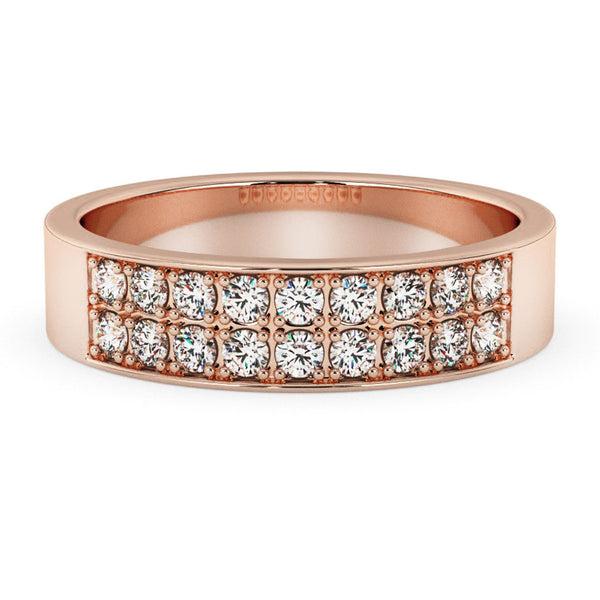 Silván rosekultainen sormus timanteilla Materiaali: 14K rosekultaRungon profiili: FlakkaTimantit: Yhteensä 0,36ctTimanttien puhtaus: VSTimanttien väri: HTimanttien hionta: BrilliantTimanttikorun aitoustodistus: KylläTuotenumero: 00144736ROSE Tuplarivistö timantteja leveässä, rosekultaisessa rungossa on upea näky. Sormuksen kirkkaat, symmetrisesti sijoitellut timantit luovat harmonisen kauniin yleisilmeen. Runkoon istutetut timantit myös tekevät sormuksesta yhtä aikaa sekä maltillisen että ylellisen. Katso koko Silván-timanttisormusvalikoima täältä!Silván. Ikuista. Suomalaista.
