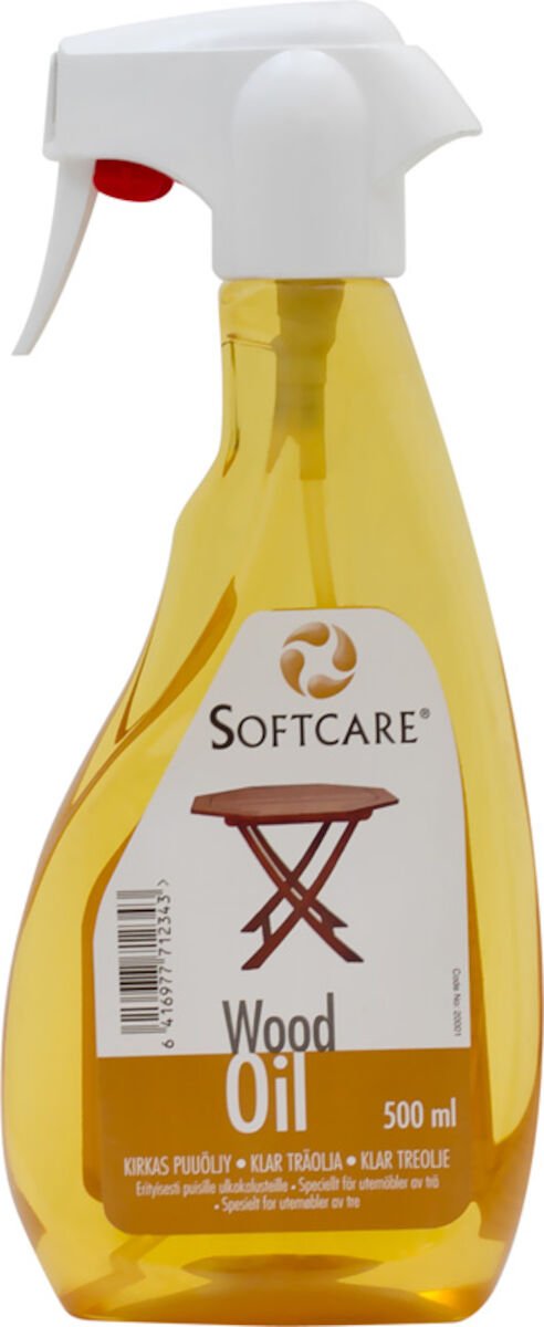 Softcare puuöljy on tarkoitettu pintakäsittelemättömille ja öljytyille puupinnoille tarkoitettu erikoisöljy. Softcare värittömällä puuöljyllä suojaat helposti kodin öydät, tuolit, työtasot sekä puiset ulkokalusteet. Puuöljy antaa suojan kosteutta ja likaa vastaan sekä estää puuta kuivumasta. Kalusteesi saavat kauniin pehmeän pinnan ja kalusteiden käyttöikä lisääntyy. Puuöljy levitetään tuotteen pinnalle ja annetaan imeytyä. Tuote on vaaraton kuivuttuaan. Lue tarkemmat käyttöohjeet tuotteesta. Huomioithan, että vaikka öljy on väritön, öljyäminen antaa tuotteelle hieman väriä. Tuote säilyy vähintään 6 vuotta. Riittävyys 5-6 m²
