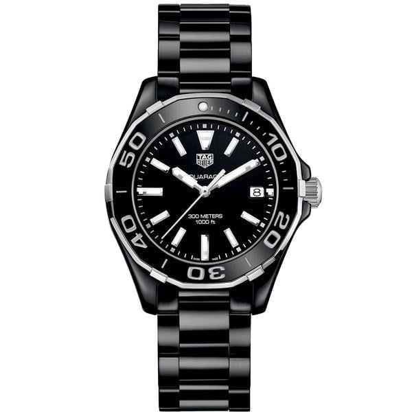 TAG Heuer Aquaracer, naisten rannekello – tuotenumero: WAY1390.BH0716 – rungon materiaali: keraaminen – rungon väri: musta – rannekkeen materiaali: keraaminen – rannekkeen väri: musta – kellotaulun väri: musta – kellotaulun leveys: 35 mm – safiirilasi – päivämääränäyttö – vesitiiviys: 300 m – kvartsikello