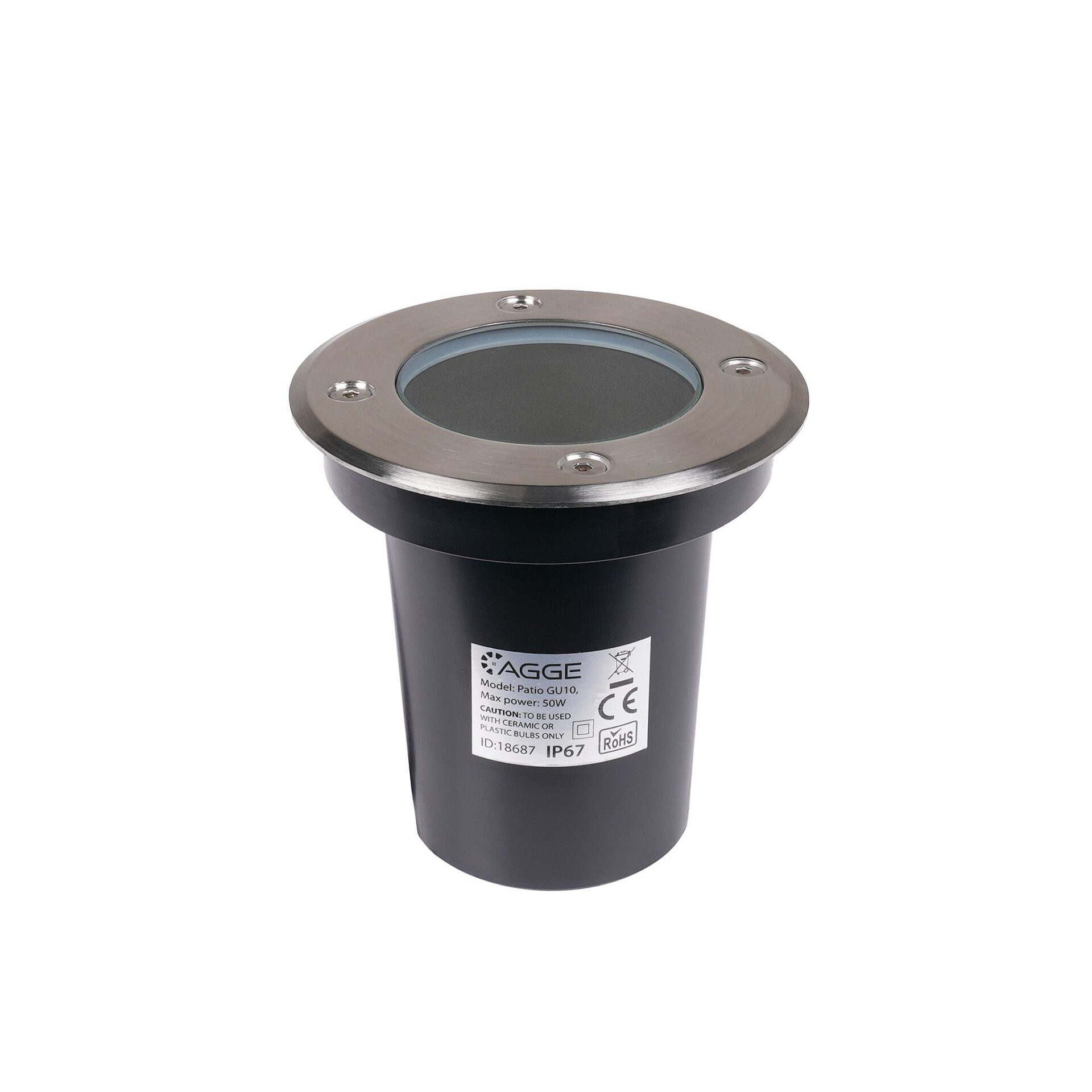 Tyylikäs, uppoasennettava terassivalo esim. sisäänkäyntien, patioiden ja portaikkojen valaisuun. Toimii vaihdettavalla GU10-kantaisella polttimolla, mikä mahdollistaa ainutlaatuisen valaistuksen luomisen. Pölyltä ja vedeltä suojattu runko, terassiin upotettuna kestää myös päältä kävelyn.