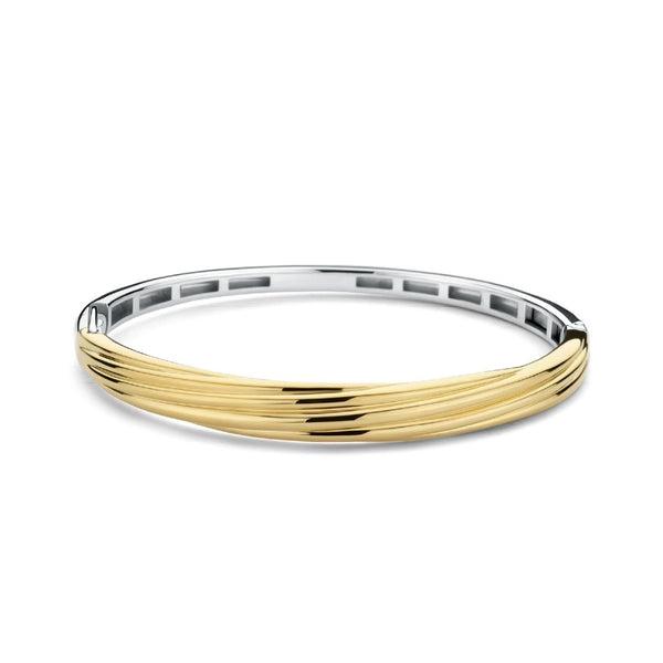 Hopeinen TI SENTO 2969SY -rannerengas, jossa on keltakullatut kierrekoristeet Kaunis, vintagehenkinen TI SENTO -rannerengas yhdistelee hopeaa ja keltakullattua hopeaa. Rannekorussa on keltakullatut kierrekoristeet ja toinen puoli kiiltävää hopeapintaa. TI SENTO Milano -korumallisto saa vaikutteensa synnyinkaupungistaan Milanosta. Sen laadukkaat hopeakorut ovat rodinoituja, mikä antaa hopealle kauniin entistä kiiltävämmän pinnan ja suojaa sitä luonnolliselta tummumiselta sekä kulumiselta. TI SENTO -koruissa käytetään myös kelta- ja ruusukultauksia sekä käsin istutettuja zirkoneja. Kaikilla TI SENTO -koruilla on kahden vuoden takuu. Materiaali: hopea ja keltakullattu hopea Halkaisija: 60 mmLeveys: 8 mmTuotenumero: 2969SY Katso kaikki TI SENTO -korut täältä