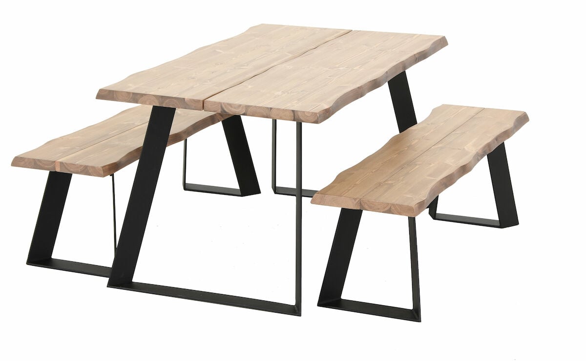 Tyylikäs ja näyttävä Triangel lankku penkkiryhmä neljälle hengelle. Pöytä ja penkki on valmistettu kestävästä ja ekologisesta männystä. Kansi on tehty kahdesta liimapuulankusta, jonka liimauksessa on käytetty vedenkestävää liimaa. Jalat ovat maalattua metallia. Kannessa näkyy kauniisti puun syyt ja kuviointi, joten pinta ei ole tasainen. Pinta valmistetaan erikoisharjaamalla, jonka tarkoituksena on korostaa puun luonnollisia ominaisuuksia. Jokainen pöytä ja penkki on yksilöllinen oksien, puunkuvioinnin, värisävyn, värin tasaisuuden ja harjattujen urien syvyyksien osalta. Pöytää on mahdollista jatkaa erikseen ostettavan jatkopalan avulla, jonka voi kiinnittää pöydän molempiin päätyihin. Yhdellä jatkopalalla saa pöytään lisäpituutta 45 cm. Lisätietoa materiaalista: Triangel-p&o…