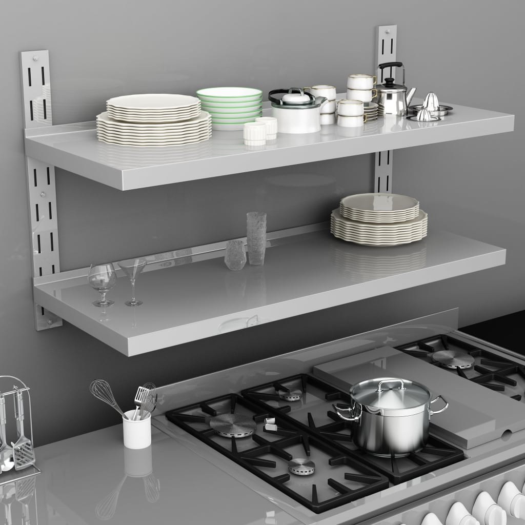 2-kerroksinen ruostumattomasta teräksestä valmistettu seinähylly on paitsi tyylikäs myös erittäin toimiva. Se on loistava valinta niille, jotka tarvitsevat ylimääräistä säilytystilaa keittiöissä. Se on täydellinen paikka lautasten, astioiden ja monien muiden keittiövälineiden pitämiseen. Ruostumattomasta teräksestä valmistettu keittiön seinähylly on erittäin kestävä, vakaa ja helppo puhdistaa, joten se sopii erinomaisesti silloin kun otettava huomioon korkean hygienian vaatimukset. Hyllyn kokonaiskuorma on 40 kg. Asennustarvikkeet tulevat mukana ja ripustettava seinähylly on helppo koota. 2-kerroksinen Materiaali: ruostumaton teräs Koko (hyllyä kohti): 120 x 30 cm (L x S) Kokonaiskuorma: 40 kg Erittäin vahvoilla seinäkiinnikkeillä Seinäkiinnikkeen korkeus: 70 cm Hygieeninen suunnittelu, ruostumaton ja helppo puhdistaa Hyllyn asennuskorkeus säädettävissä