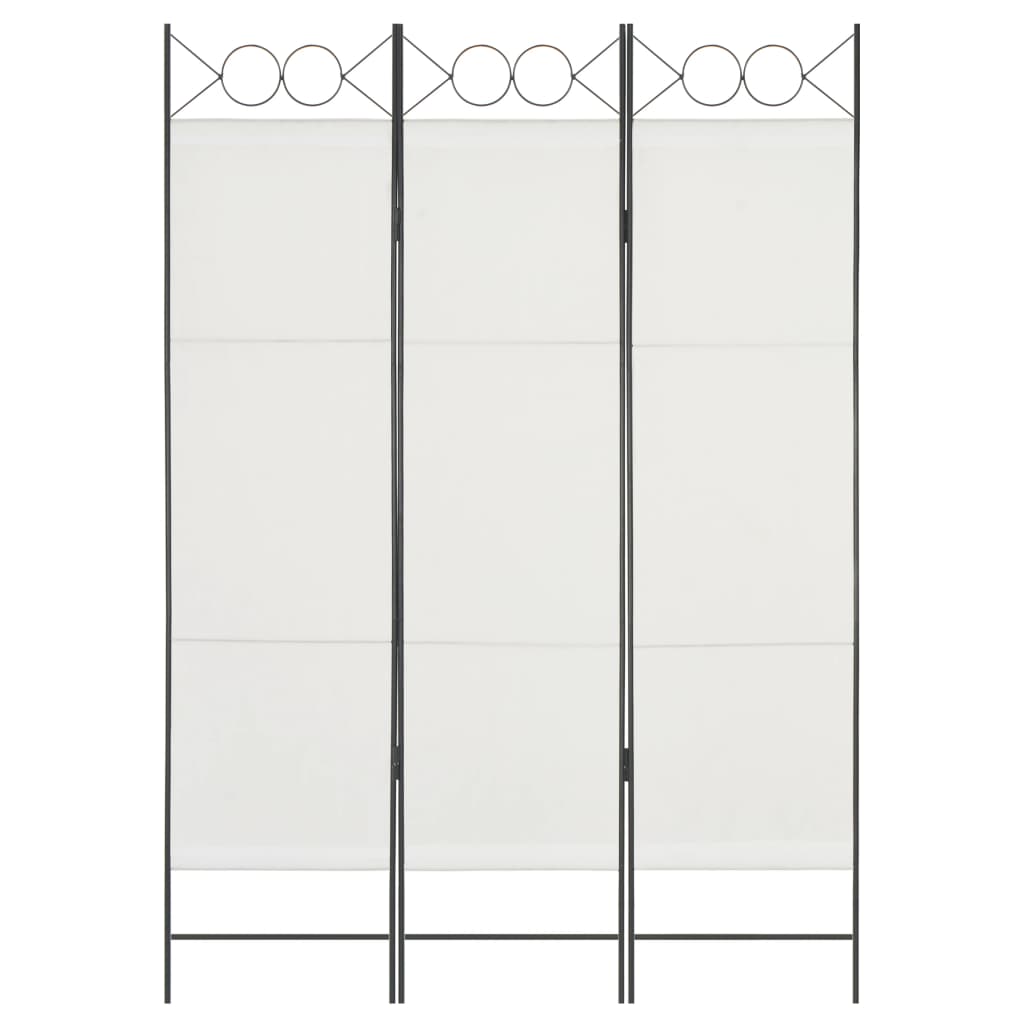 Itsestään seisovaa ja käytännöllistä 3-paneelista tilanjakajaa voidaan käyttää koristeeksi tai väliseinänä. Voit laittaa sen makuuhuoneeseen luomaan erillisen pukeutumisalueen tai jakaaksesi huoneen tilan kahtia. Yläosan ympyrämuotoilu lisää tuotteen eleganssia. Lisäksi tilanjakaja, jossa on jauhemaalattu teräsrunko ja tekstiilisermi, voidaan helposti taittaa ylös, kun sitä ei käytetä. Huomio: Kangas ei täysin estä kaikkea valoa. Väri: valkoinen Materiaali: kangas ja jauhemaalattu teräs Koko: 120 x 180 cm (P x K) 3 paneelia Yläosa ympyrämuotoilulla Tekstiili: Polyesteri: 100%