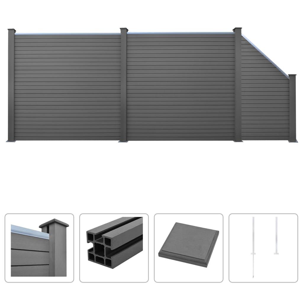 Puumuovikomposiitista valmistetuilla aitapaneeleilla voit aidata pihan tai talon luodaksesi yksityisyyttä ja turvallisuutta. Puukomposiittipaneeleissa on puunsyykuvio toisella ja tavallinen kuvio toisella puolella, jolloin voi valita, kummasta pitää enemmän. Puumuovikomposiittipaneelit eivät tarvitse mitään lisäkäsittelyä, kuten öljyämistä tai maalaamista. Ne ovat hyvin lujia sekä sään- ja ruosteenkestäviä. Aidan päällinen on alumiinia, jolloin paneelit voidaan kiinnittää toisiinsa tiukasti, mikä tekee rakennelmasta vahvan. Moduulien ansiosta paneelit on helppo asentaa. Aitaa voi myös vaivatta laajentaa. Aidanpylväissä on kolme koloa, jotta aita voidaan koota monin eri tavoin, esimerkiksi suoraan (180 astetta), suorakulmaan (90 astetta) tai T-muotoon. Monikäyttöiset teräsjalat voidaan asentaa kahdella tavalla: joko kiinnittämällä ne maahan ankkuriruuveilla tai kiinnittämällä ne betonialustaan teräspiikeillä. Sekä ankkuriruuvit että kiinnityspiikit sisältyvät toimitukseen. Aita on helppo asentaa. Toimituksessa mukana 27 puu-muovikomposiittilevyä, 4 tolppaa, 4 teräsjalkaa ja 3 alumiinipalkkia. Väri: harmaa Materiaali: puukomposiitti + alumiinipäällinen Koko: 451 x 187 cm (P x L) Neliönmuotoinen paneeli: Paneelin koko (yksi levy): 170 x 20,3 cm (P x L) Levyn paksuus: 2 cm Palkin pituus: 170 cm Pylvään mitat: 9 x 9 x 185 cm (pituus x leveys x korkeus) Viistopaneeli: Levyn koko: (24 – 90) x 20,3 cm (P x L) Levyn paksuus: 2 cm Pylvään mitat: 9 x 9 x 105 cm (pituus x leveys x korkeus) Teräsjalka: Kokonaismitat: 88 x 88 x 1150 mm (pituus x leveys x korkeus) Pituus (teräspiikki mukaanluettuna): 1150 mm Pituus (ilman teräspiikkiä): 650 mm Toimitus sisältää: 27 x aitalevy 4 x tolppa 4 x teräsjalka 3 x alumiinipalkki