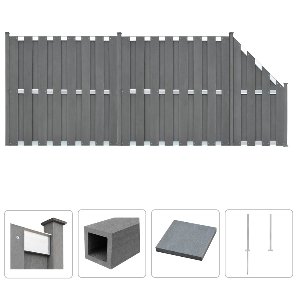 Puumuovikomposiitista valmistetuilla aitapaneeleilla voit aidata pihan tai talon luodaksesi yksityisyyttä ja turvallisuutta. Puukomposiitista valmistetut aitapaneelit eivät vaadi mitään lisätoimia, kuten öljyämistä tai maalausta. Ne ovat erittäin kestäviä ja lahoamattomia sekä ruostumattomia. Moduulijärjestelmällä suunnitellut aitalevyt on helppo asentaa ja voit laajentaa aitaa helposti. Monitoimiset teräsjalat voidaan kiinnittää kahdella eri tavalla. Ne voidaan kiinnittää ruuvaamalla ne kiinni haluamaasi pintaan käyttäen mukana tulevia ankkuriruuveja, tai ne voidaan kiinnittää osaksi sementtiä käyttäen mukana tulevaa maapiikkiä. Tämä aitasarja on helppo koota. Toimituksessa mukana 37 puumuovikomposiittilevyä, 4 tolppaa, 4 teräsjalkaa ja 9 alumiinipalkkia. Väri: harmaa Materiaali: puumuovikomposiitti Kokonaismitat: 472 x 185 cm (P x L) Neliönmuotoinen paneeli: Paneelin koko (yksi levy): 180 x 14 cm (P x K) Levyn paksuus: 8 mm Tolpan mitat: 5,4 x 5,4 x 185 cm (P x L x K) Alumiinipalkin mitat: 180 x 7 x 1,3 cm (P x L x K) Viistopaneeli: Levyn paksuus: 8 mm Tolpan mitat: 5,4 x 5,4 x 100 cm (P x L x K) Teräsjalka: Kokonaismitat: 88 x 88 x 1150 mm (pituus x leveys x korkeus) Pituus (teräspiikki mukaanluettuna): 1150 mm Pituus (ilman teräspiikkiä): 650 mm Toimitus sisältää: 37 x aitalevy 4 x tolppa 4 x teräsjalka 9 x alumiinipalkki