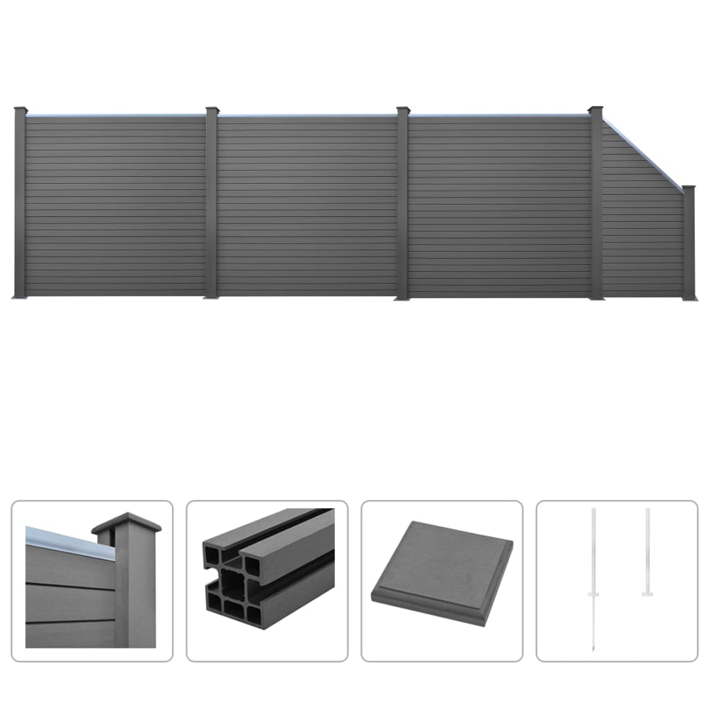Puumuovikomposiitista valmistetuilla aitapaneeleilla voit aidata pihan tai talon luodaksesi yksityisyyttä ja turvallisuutta. Puukomposiittipaneeleissa on puunsyykuvio toisella ja tavallinen kuvio toisella puolella, jolloin voi valita, kummasta pitää enemmän. Puumuovikomposiittipaneelit eivät tarvitse mitään lisäkäsittelyä, kuten öljyämistä tai maalaamista. Ne ovat hyvin lujia sekä sään- ja ruosteenkestäviä. Aidan päällinen on alumiinia, jolloin paneelit voidaan kiinnittää toisiinsa tiukasti, mikä tekee rakennelmasta vahvan. Moduulien ansiosta paneelit on helppo asentaa. Aitaa voi myös vaivatta laajentaa. Aidanpylväissä on kolme koloa, jotta aita voidaan koota monin eri tavoin, esimerkiksi suoraan (180 astetta), suorakulmaan (90 astetta) tai T-muotoon. Monikäyttöiset teräsjalat voidaan asentaa kahdella tavalla: joko kiinnittämällä ne maahan ankkuriruuveilla tai kiinnittämällä ne betonialustaan teräspiikeillä. Sekä ankkuriruuvit että kiinnityspiikit sisältyvät toimitukseen. Aita on helppo asentaa. Toimituksessa mukana 36 puu-muovikomposiittilevyä, 5 tolppaa, 5 teräsjalkaa ja 4 alumiinipalkkia. Väri: harmaa Materiaali: puukomposiitti + alumiinipäällinen Koko: 625 x 187 cm (P x L) Neliönmuotoinen paneeli: Paneelin koko (yksi levy): 170 x 20,3 cm (P x L) Levyn paksuus: 2 cm Palkin pituus: 170 cm Pylvään mitat: 9 x 9 x 185 cm (pituus x leveys x korkeus) Viistopaneeli: Levyn koko: (24 – 90) x 20,3 cm (P x L) Levyn paksuus: 2 cm Pylvään mitat: 9 x 9 x 105 cm (pituus x leveys x korkeus) Teräsjalka: Kokonaismitat: 88 x 88 x 1150 mm (pituus x leveys x korkeus) Pituus (teräspiikki mukaanluettuna): 1150 mm Pituus (ilman teräspiikkiä): 650 mm Toimitus sisältää: 36 x aitalevy 5 x tolppa 5 x teräsjalka 4 x alumiinipalkki