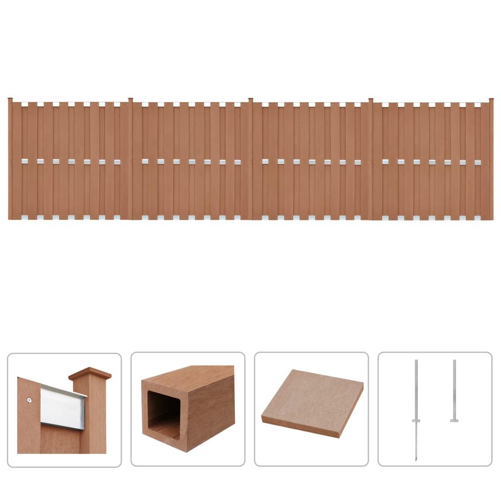 Puumuovikomposiitista valmistetuilla aitapaneeleilla voit aidata pihan tai talon luodaksesi yksityisyyttä ja turvallisuutta. Puukomposiitista valmistetut aitapaneelit eivät vaadi mitään lisätoimia, kuten öljyämistä tai maalausta. Ne ovat erittäin kestäviä ja lahoamattomia sekä ruostumattomia. Moduulijärjestelmällä suunnitellut aitalevyt on helppo asentaa ja voit laajentaa aitaa helposti. Monitoimiset teräsjalat voidaan kiinnittää kahdella eri tavalla. Ne voidaan kiinnittää ruuvaamalla ne kiinni haluamaasi pintaan käyttäen mukana tulevia ankkuriruuveja, tai ne voidaan kiinnittää osaksi sementtiä käyttäen mukana tulevaa maapiikkiä. Tämä aitasarja on helppo koota. Toimituksessa mukana 60 puu-muovikomposiittilevyä, 5 tolppaa, 5 teräsjalkaa ja 12 alumiinipalkkia. Väri: ruskea Materiaali: puumuovikomposiitti Kokonaismitat: 747 x 185 cm (P x L) Paneelin koko (yksi levy): 180 x 14 cm (P x K) Levyn paksuus: 8 mm Tolpan mitat: 5,4 x 5,4 x 185 cm (P x L x K) Teräsjalka: Kokonaismitat: 88 x 88 x 1150 mm (pituus x leveys x korkeus) Pituus (teräspiikki mukaanluettuna): 1150 mm Pituus (ilman teräspiikkiä): 650 mm Alumiinipalkin mitat: 180 x 7 x 1,3 cm (P x L x K) Toimitus sisältää: 60 x aitapaneeli 5 x tolppa 5 x teräsjalka 12 x alumiinipalkki