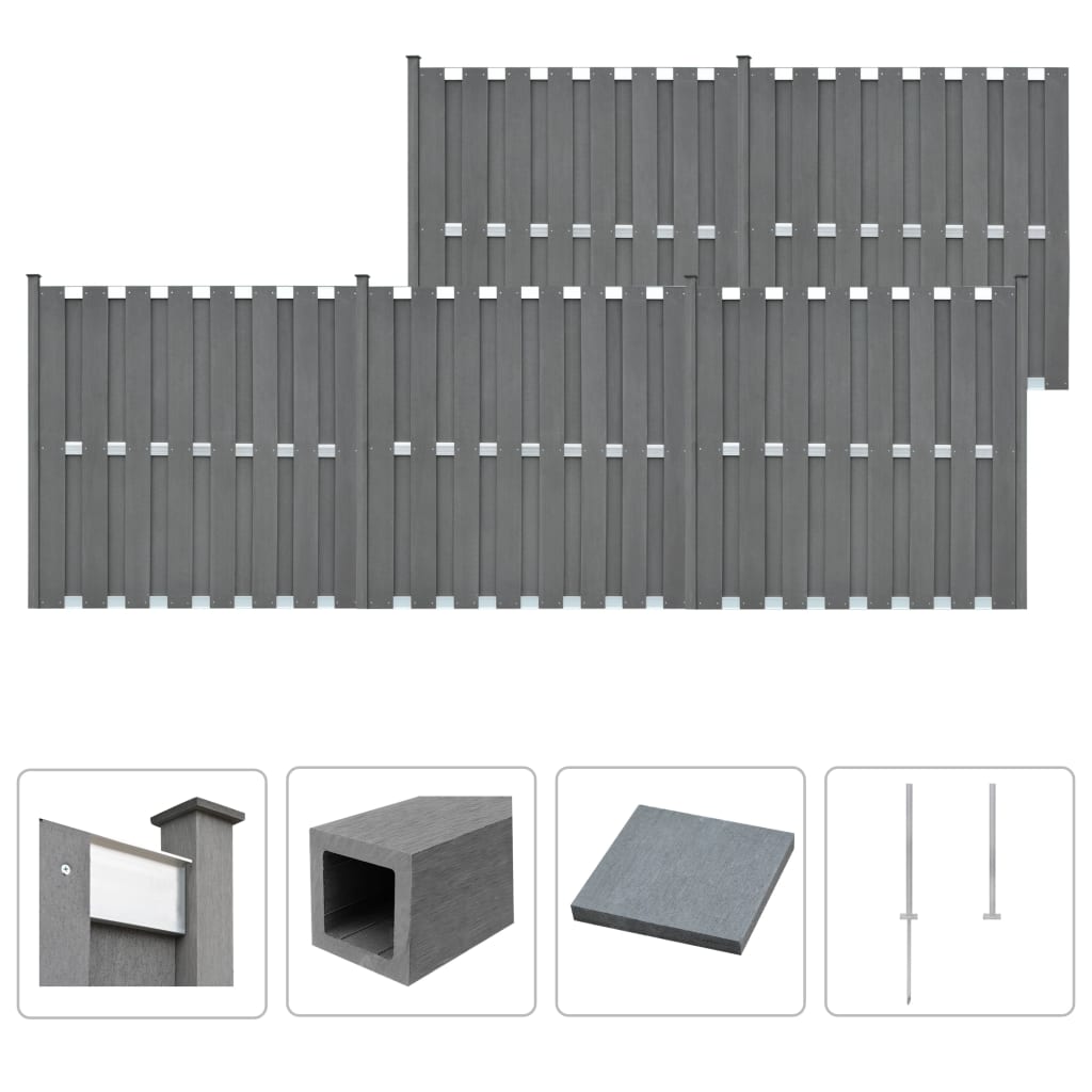 Puumuovikomposiitista valmistetuilla aitapaneeleilla voit aidata pihan tai talon luodaksesi yksityisyyttä ja turvallisuutta. Puukomposiitista valmistetut aitapaneelit eivät vaadi mitään lisätoimia, kuten öljyämistä tai maalausta. Ne ovat erittäin kestäviä ja lahoamattomia sekä ruostumattomia. Moduulijärjestelmällä suunnitellut aitalevyt on helppo asentaa ja voit laajentaa aitaa helposti. Monitoimiset teräsjalat voidaan kiinnittää kahdella eri tavalla. Ne voidaan kiinnittää ruuvaamalla ne kiinni haluamaasi pintaan käyttäen mukana tulevia ankkuriruuveja, tai ne voidaan kiinnittää osaksi sementtiä käyttäen mukana tulevaa maapiikkiä. Tämä aitasarja on helppo koota. Toimituksessa mukana 75 puu-muovikomposiittilevyä, 6 tolppaa, 6 teräsjalkaa ja 15 alumiinipalkkia. Väri: harmaa Materiaali: puumuovikomposiitti Kokonaismitat: 932 x 185 cm (P x L) Paneelin koko (yksi levy): 180 x 14 cm (P x K) Levyn paksuus: 8 mm Tolpan mitat: 5,4 x 5,4 x 185 cm (P x L x K) Teräsjalka: Kokonaismitat: 88 x 88 x 1150 mm (pituus x leveys x korkeus) Pituus (teräspiikki mukaanluettuna): 1150 mm Pituus (ilman teräspiikkiä): 650 mm Alumiinipalkin mitat: 180 x 7 x 1,3 cm (P x L x K) Toimitus sisältää: 75 x aitalevy 6 x tolppa 6 x teräsjalka 15 x alumiinipalkki