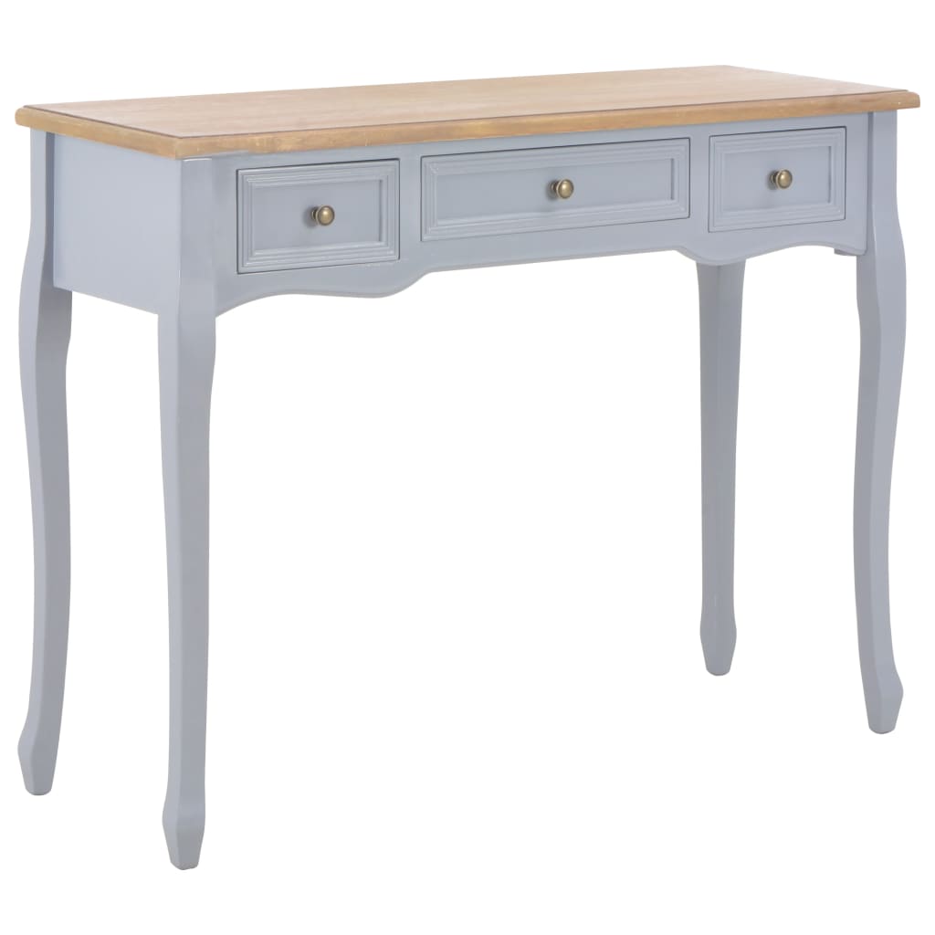 Tämä konsolipöytä yksinkertaisella, mutta tyylikkäällä suunnittelulla on upea lisä olohuoneeseen, ruokasaliin, käytävään, jne. Tässä pöydässä yhdistyvät erinomainen käsityötaito sekä upea käytännöllisyys. Sen kompaktin suunnittelun ansiosta, konsolipöytä vie vain hyvin vähän tilaa ja sopii pieniin tiloihin. Kaksi sujuvasti avautuvaa vetolaatikkoa tarjoavat ylimääräistä tilaa koristeille, meikeille tai muille henkilökohtaisille tavaroille. Tämä pukeutumispöytä on valmistettu korkealaatuisesta MDF-levystä sekä mäntypuusta ja viimeistelty harmaalla maalilla ollakseen entistä kestävämpi ja voidakseen tarjota monien vuosien käyttöiän. Väri: harmaa ja ruskea Materiaali: MDF + mänty Kokonaismitat: 100 x 35 x 78 cm (P x L x K) Suuren laatikon koko: 36,5 x 29 x 9,5 cm (P x L x K) Pienen laatikon koko: 24,4 x 29 x 9,5 cm (P x L x K) Sisältää rautanupit VAROITUS! Kaatumisen estämiseksi tätä tuotetta on käytettävä mukana toimitetun seinäkiinnityslaitteen kanssa. Legal Documents: Lisätietoja huonekalujesi kaatumisen estämisestä voit löytää täältä
