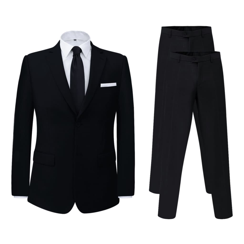 Pukusettiin kuuluu takki ja kaksi paria housuja. Rennomman ulkonäön saavuttamiseksi voit viimeisimpien muotitrendien mukaisesti pitää puvuntakkia paidan ja farkkujen kanssa. Housuja voidaan pitää rennosti villapaidan kanssa, ja ne voidaan yhdistää myös paitaan ja bleiseriin virallisemman tyylin saavuttamiseksi. Puku on valmistettu korkealaatuisesta polyesteri/viskoosi sekoituksesta, joten se on todella mukava päällä ja helppo ylläpitää. Huomio: 1) Lahkeiden suut ovat viimeistelemättömät, voit siis räätälöidä ne haluamaasi pituuteen. 2) Kauluspaita, kravatti ja taskuliina eivät sisälly toimitukseen. Väri: musta Koko: 48 Tyköistuva (slim fit) Puvun tiedot : 2-nappinen takki Vuoren materiaali: 100% polyesteri Housujen tiedot : Litteä etuosa vetoketju koukkukiinnityksellä 2 etutaskua ja 2 napillista takataskua Vyölenkit Kokotietojen saamiseksi, ole hyvä ja tarkista kokotaulukko (katso kuvat) Tärkeää! Mainittu koko kokotaulukossa on tuotteen koko Koon toleranssi +/- 2 cm Toimitus sisältää takin ja kaksi paria housuja Tekstiili: Polyesteri: 80%, Viskoosi: 20%