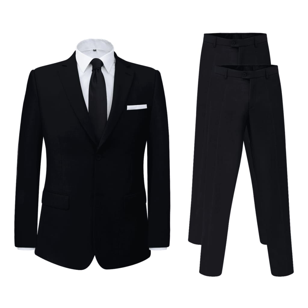 Pukusettiin kuuluu takki ja kaksi paria housuja. Rennomman ulkonäön saavuttamiseksi voit viimeisimpien muotitrendien mukaisesti pitää puvuntakkia paidan ja farkkujen kanssa. Housuja voidaan pitää rennosti villapaidan kanssa, ja ne voidaan yhdistää myös paitaan ja bleiseriin virallisemman tyylin saavuttamiseksi. Puku on valmistettu korkealaatuisesta polyesteri/viskoosi sekoituksesta, joten se on todella mukava päällä ja helppo ylläpitää. Huomio: 1) Lahkeiden suut ovat viimeistelemättömät, voit siis räätälöidä ne haluamaasi pituuteen. 2) Kauluspaita, kravatti ja taskuliina eivät sisälly toimitukseen. Väri: musta Koko: 54 Tyköistuva (slim fit) Puvun tiedot : 2-nappinen takki Vuoren materiaali: 100% polyesteri Housujen tiedot : Litteä etuosa vetoketju koukkukiinnityksellä 2 etutaskua ja 2 napillista takataskua Vyölenkit Kokotietojen saamiseksi, ole hyvä ja tarkista kokotaulukko (katso kuvat) Tärkeää! Mainittu koko kokotaulukossa on tuotteen koko Koon toleranssi +/- 2 cm Toimitus sisältää takin ja kaksi paria housuja Tekstiili: Polyesteri: 80%, Viskoosi: 20%