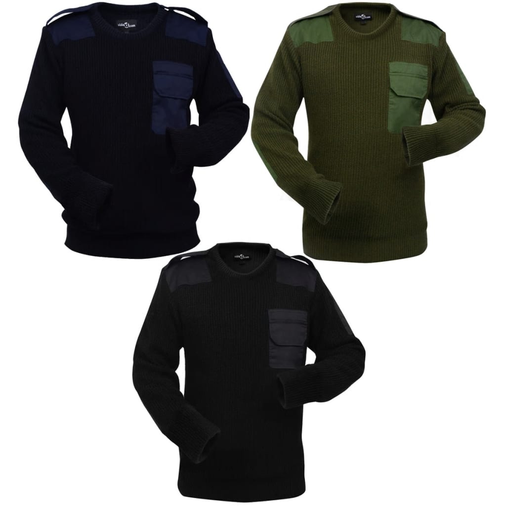 Mukavat villapaitamme työskentelyyn, klassisella ja kestävällä armeijatyylillä, täydentävät työasuasi. Ylimääräinen vaatekerros pitää sinut lämpimänä. Pakettiin kuuluu 3 eri väristä villapaitaa. Paitojen ominaisuuksiin kuuluvat olkatarrat, olkaimet, rintatasku sekä kynän paikka vasemman käden puolella. Korkealaatuisesta akryylistä valmistetut villapaidat tuntuvat mukavilta päällä pidettäessä ja ne on helppo pitää puhtaana. Väri: Laivaston/armeijan vihreä/musta Koko: XXL Materiaali: 100% akryyli Armeijatyyliset olkatarrat ja olkaimet 1 rintatasku 1 paikka kynälle vasemman käden puolella Uurrettu kaulus, hihansuut ja helma Konepestävä Kokotietoja varten ole hyvä ja tutustu kokomäärittelyyn Tärkeää! Kokotaulukossa mainitut koot ovat tuotekokoja Kokovaihtelu +/- 2 cm Toimitus sisältää 3 villapaitaa Tekstiili: akryyli: 100%