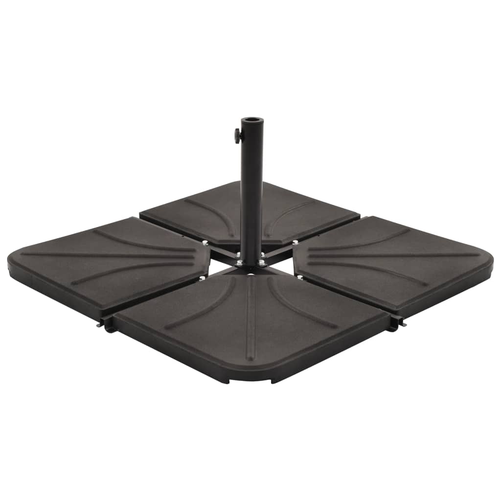 Tämä aurinkovarjotelinesarja tarjoaa tukevan alustan aurinkovarjollesi ja pitää sen pystyssä estäen sitä lentämästä tuulen mukana. Kiinteä teräspylväs, kaaret ja pohja yhdessä vahvan 18 kg:n betonipainon kanssa varmistaa, että päivänvarjo pysyy erittäin vakaana, ja samalla se varmistaa, että varjo on jäykästi paikallaan tuulisina päivinä. Tämä päivänvarjon jalusta antaa varmasti sekä ihastuttavan että maanläheisen lisäyksen ulkotilaasi sen hienon muotoilun ansiosta! Toimitus sisältää 1 päivänvarjon telineen ja 4 neliölevyä Aurinkovarjon jalusta: Väri: musta Materiaali: teräs Kokonaismitat: 84/100 x 84/100 x 35 cm (L x S x K) Putken mitat: 5,8 x 38 cm (Halk. x K) Paino: 2,75 kg Kokoontaitettava Sisältää adapterit 35, 38 ja 48 mm tangoille. Levypaino: Väri: harmaa Materiaali: betoni Mitat: 47 x 47 x 4,5 cm (L x S x K) Paino: 18 kg Toimitus sisältää 1 päivänvarjon telineen ja 4 neliölevyä