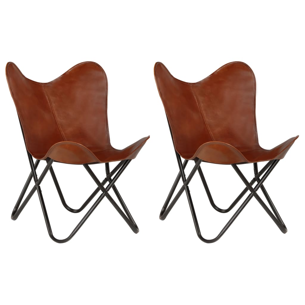 Aidosta nahasta valmistetut vintagetyyliset perhostuolit on ergonomisesti suunniteltu täydelliseen rentoutumiseen. Niiden ikoninen perhosmuotoilu on erittäin suosittu ja se sopii mihin tahansa sisustukseen. Klassisessa perhosmallisissa nahkatuoleissa on lievästi kaareva selkänoja ja istuin, jotka takaavat lapsellesi riittävän tuen ja samalla erinomaisen istumamukavuuden. Kestävät retrotyyliset perhostuolit on valmistettu aidosta nahasta. Tuolin neljä kulmaa on vahvistettu aidolla nahalla. Jauhemaalattu teräsrunko tekee tuoleista vakaat ja kestävät. Tuolit ovat kevyet ja mukavat. Tyylikkäät ja mukavat tuolit ovat epäilemättä täydellinen valinta lapsillesi! Toimitus sisältää 2 tuolia. Väri: ruskea Materiaali: aito nahkaverhoilu + jauhemaalattu teräsrunko Kokonaiskorkeus: 76 cm Istuimen leveys: 56 cm Istuimen syvyys: 63 cm Istuinkorkeus maasta mitattuna: 30 cm Mustat jauhemaalatut putket Toimitus sisältää 2 tuolia Tekstiili: Nahka: 100%