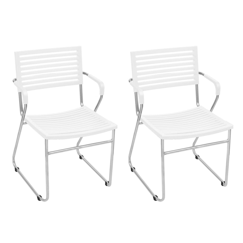 Tämä 2:n käsinojallisen tuolin sarja sopii käytettäväksi ruoka- tai toimistotuoleina. Niissä on puhtaan ergonomiset linjat, sekä selkä- ja käsinoja, ne ovat todella mukavat. Koska ne on valmistettu laadukkaasta muovista ja tukevasta raudasta, nämä tuolit tarjoavat vuosien käyttöiän. Tämän lisäksi, tuolit voidaan pinota, joten niiden varastointi ja kuljetus on todella helppoa. Toimitus sisältää 2 tuolia. Väri: valkoinen Materiaali: Muovi + rauta Koko: 53 x 51 x 78 cm (L x S x K) Istuimen mitat: 44,5 x 39,5 cm (L x S) Selkänojan korkeus: 41 cm Istuimen korkeus maasta: 44 cm Toimitus sisältää 2 tuolia