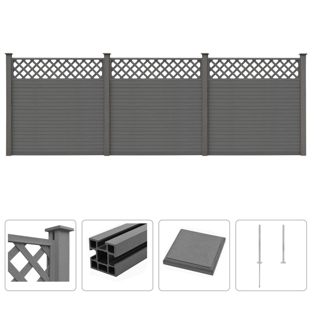 Puumuovikomposiitista valmistetuilla aitapaneeleilla voit aidata pihan tai talon luodaksesi yksityisyyttä ja turvallisuutta. Puumuovikomposiittipaneeleissa on painettu puunsyykuvio toiselle puolelle ja tavallinen kuvio toiselle puolelle, jolloin voi valita, kummasta pitää enemmän. Puumuovikomposiittipaneelit eivät tarvitse mitään lisäkäsittelyä kuten öljyämistä tai maalaamista. Ne ovat hyvin lujia sekä sään- ja ruosteenkestäviä. Mukana tulevat säleikköpaneelit luovat koristeellisen lisän. Moduulien ansiosta paneelit on helppo asentaa. Aitaa voi myös vaivatta laajentaa. Aidanpylväissä on kolme koloa, jotta aita voidaan koota monin eri tavoin, esimerkiksi suoraan (180 astetta), suorakulmaan (90 astetta) tai T-muotoon. Monikäyttöiset teräsjalat voidaan asentaa kahdella tavalla: joko kiinnittämällä ne maahan ankkuriruuveilla tai kiinnittämällä ne betonialustaan teräspiikeillä. Sekä ankkuriruuvit että kiinnityspiikit sisältyvät toimitukseen. Aita on helppo koota. Toimituksessa mukana 21 WPC-levyä, 4 pylvästä, 4 teräsjalkaa ja 3 säleikköpaneelia. Väri: harmaa Materiaali: puumuovikomposiitti Koko: 531 x 185 cm (P x L) Paneelin koko (yksi levy): 170 x 20,3 cm (P x L) Levyn paksuus: 2 cm Säleikön mitat: 168 x 40 x 3 cm (P x L x K) Pylvään mitat: 9 x 9 x 185 cm (pituus x leveys x korkeus) Teräsjalka: Kokonaismitat: 88 x 88 x 1150 mm (pituus x leveys x korkeus) Pituus (teräspiikki mukaanluettuna): 1150 mm Pituus (ilman teräspiikkiä): 650 mm Toimitus sisältää: 21 x aitalevy 4 x tolppa 4 x teräsjalka 3 x säleikkö