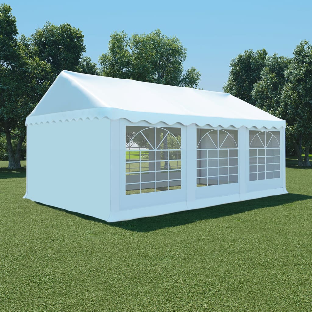 Huvimaja on upea paikka viihdyttää perhettäsi sekä ystäviäsi kaikenlaisissa ulkojuhlissa ja kokoontumisissa. Voit asentaa sen myös takapihalle suureksi, pysyväksi aurinkosuojaksi perheellesi sekä vieraillesi. Juhlateltan katos on valmistettu 100% PVC-materiaalista, mikä tekee katosta ja seinistä UV-suojaavat sekä vettähylkivät. Siinä on 6 seinäpaneelia, joissa kussakin on koristeellinen ikkuna, sekä 2 erikokoista kätevästi ylös rullattavaa vetoketjullista ovipaneelia sisäänkäynnin helpottamiseksi. Runko on valmistettu ruosteenkestävästä teräksestä ja se on todella kestävä. Todella helppo koota. Toimituksessa on katos, sivuseinät, teräsrunko ja kaikki tarvikkeet teltan pystyttämiseen. Ole hyvä ja ota huomioon, että suosittelemme käsittelemään katoksen vedenpitävällä suihkeella, jos katos altistuu kovalle sateelle. HUOMIO: Tätä tuotetta ei tule KOSKAAN käyttää huonoissa sääoloissa, kuten kovassa tuulessa, kovassa sateessa, lumisateessa, myrskyssä jne. Väri: valkoinen Materiaali: kangas (500 g/m²) ja galvanoitu teräs Mitat: 4 x 6 x 3,07 m (P x L x K) Putken halkaisija: 38 mm 3 ikkunaa per puoli Räystään korkeus: 2 m Vettähylkivä katos Helppo koota Sisältää: 1 x katos tarranauhakiinnikkeillä 1 x putkirunko 2 x ovi (erikokoiset) 6 sivupaneelia yhteensä 6 ikkunalla (kukin paneeli 2 x 2 m) Useita kiinnitysköysiä, ruuveja ja tappeja katoksen sekä rungon kiinnittämiseksi Tekstiili: Polyvinyylikloridi: 100%