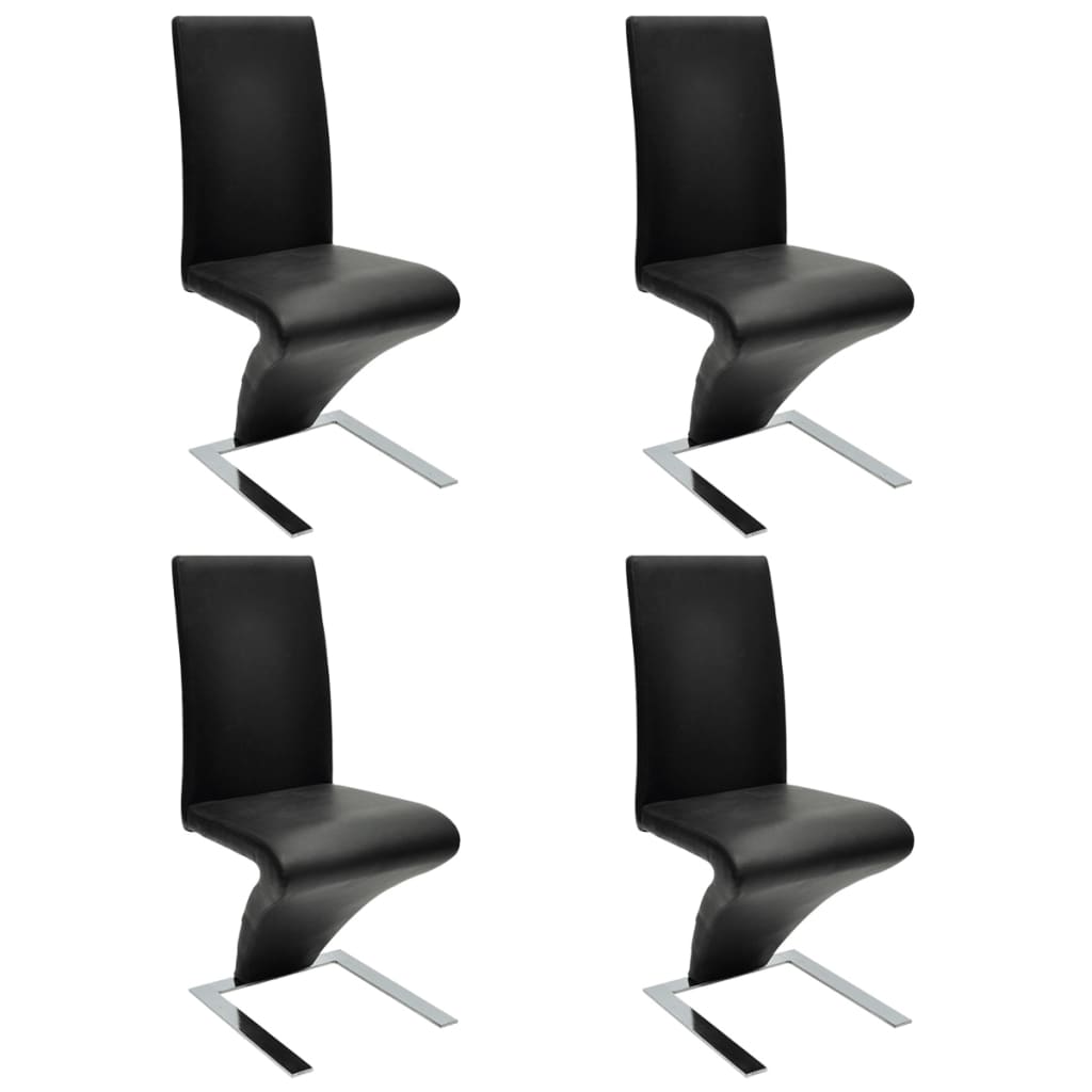 Tämä sulavalinjainen, modernisti muotoiltu ruokailutuolisarja soveltuu mihin tahansa keittiöön tai ruokailuhuoneeseen. Niiden paksusti pehmustetun istuimen ja selkänojan ansiosta, nämä keinonahkaiset tuolit ovat erittäin mukavat istua. Tuolien jalat on valmistettu kestävästä kromatusta raudasta, joka voidaan puhdistaa helposti. Nämä kauniit tuolit ovat nykyaikaiset, mutta ajattomat. Helppo koota. Toimitus sisältää 4 keinonahka tuolia. Väri: musta Materiaali: keinonahka + kromattu rauta Tuolin mitat: 44 x 58 x 99 cm (L x S x K) Istuimen korkeus maasta: 48 cm Helppo koota Toimitus sisältää 4 korkealaatuista tuolia