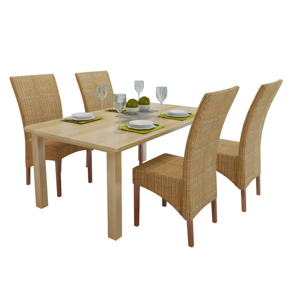 Tämä aito rottinki ruokatuoli sarja trooppisella ulkonäöllä ja tunteella antaa mahtavan lisän sisustukseesi. Kova puurunko ja aito rottinki tekevät tuolista rakenteellisesti tukevan, mutta myös esteettisesti miellyttävän. Aidolla rottingilla päällystetyt tuolit ovat erittäin mukavia. Jos etsit jotain koristamaan keittiösi tai ruokailuhuoneesi sisustusta, tämä kaunis käsintehty tuolisarja on erinomainen valinta. Toimitukseen sisältyy 4 tuolia. Huomio: Tuolit ovat käsin punottu aidosta rottingista, joten väri saattaa hieman vaihdella. Materiaali: Mangopuu + aito rottinki Koko: 46 x 56 x 97 cm (L x S x K) Istuimen leveys: 46 cm Istuimen syvyys: 43 cm Istuimen korkeus maasta: 46 cm Toimitus sisältää 4 tuolia.