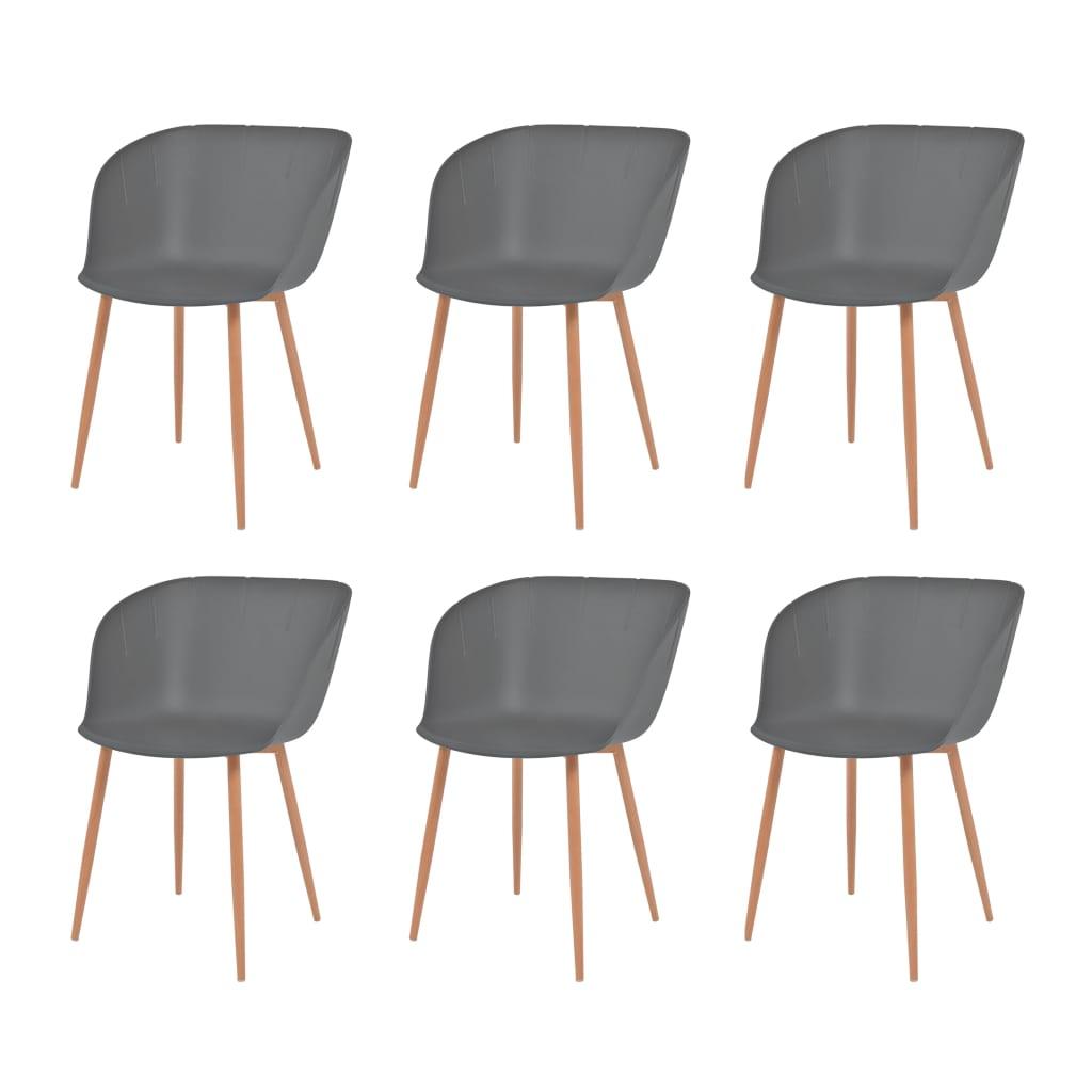 Tämä moderni ruokapöydän tuolisarja ei ole vain kaunis, mutta myös todella mukava ja se lisää hieman mukavuutta sekä tyyliä sisustukseesi. Tuolit sopivat täydellisesti ruokasalissa ruokailuun, tai olohuoneessa rentoutumiseen ja lukemiseen. Tuolit ovat ergonomisesti suunnitellut, minkä ansiosta niissä on mukava istua jopa tuntien ajan. Tuolit on valmistettu korkealaatuisista materiaaleista, joten ne ovat kestäviä ja vakaita. Toimitus sisältää 6 ruokatuolia. Väri: harmaa Materiaali: muovinen istuin + teräsjalat (pyökkipuinen ulkonäkö) Mitat: 50,5 x 55 x 79 cm (L x S x K) Istuimen leveys: 44 cm Istuimen syvyys: 40 cm Istuimen korkeus maasta: 46 cm Toimitus sisältää 6 tuolia Helppo koota