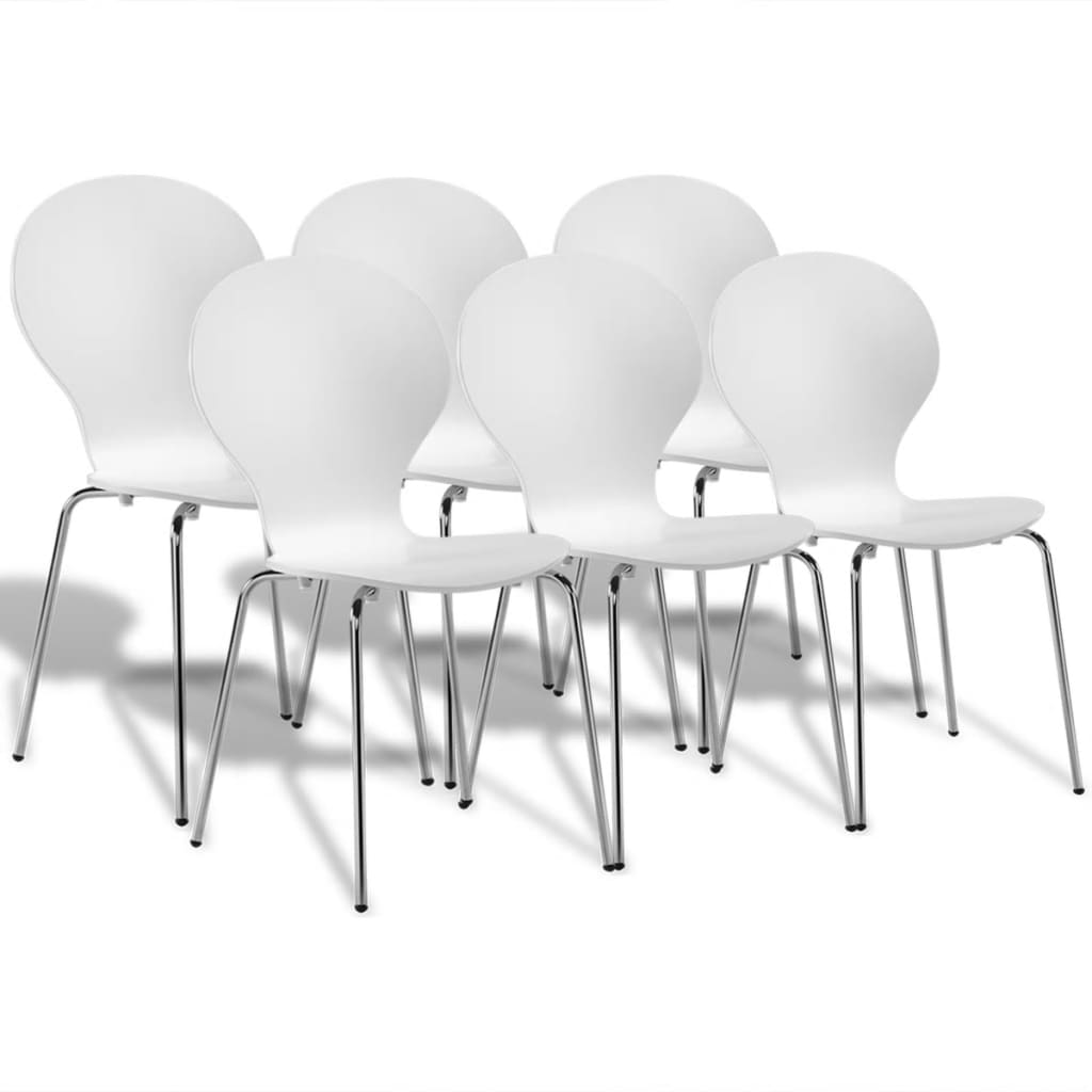 Perhosruokatuoleissamme on retro suunnittelu, joka tekee selvän tyylikkään vaikutelman. Ainutlaatuinen perhossuunnittelu on todella suosittu ja se sopii minne tahansa. Kiinteillä puurungoilla ja tukevilla teräsjaloilla, nämä houkuttelevat ruokatuolit ovat todella kestävät. Kevyet ja mukavat, voit nauttia niistä sisällä tai ulkona. Nämä tuolit voidaan myös pinota helppoa kuljetusta ja säilytystä varten. Toimituksessa mukana 6 laadukasta ruokatuolia Perhossuunnittelu Väri: valkoinen Materiaali: Taivutettu puu + teräs Maksimikantavuus: 100 kg Kokonaismitat: 49 x 52.5 x 87 cm (L x S x K) Istuimen leveys: 40 cm Istuimen syvyys: 38 cm Istuimen korkeus: 45,8 cm Toimitus sisältää 6 ruokatuolia
