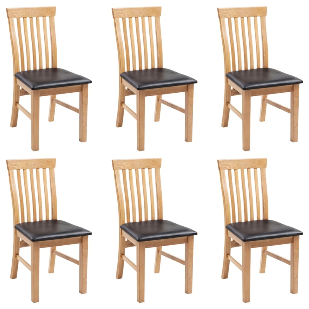 Tämä 6:n modernin tammiruokatuolin sarja on esteettisesti ja ergonomisesti suunniteltu, jotta niistä tulee keskipiste keittiössä tai ruokasalissa. Näissä täyspuisissa ruokatuoleissa on laadukas tammirunko, joka tekee niistä uskomattoman vakaat ja kestävät. Niiden paksusti pehmustetun keinonahka istuinten ansiosta, meidän tuolit ovat myös todella mukavat, ja helpot puhdistaa kostealla kankaalla. Toimitus sisältää 6 tammista ruokatuolia Väri: Musta istuin Materiaali: Tammipuurunko + keinonahkaverhoilu Mitat: 51,5 x 45 x 92 cm (L x S x K) Istuimen leveys: 51,5 cm Istuimen syvyys: 43 cm Toimitus sisältää 6 ruokatuolia Tekstiili: Polyuretaani: 100%