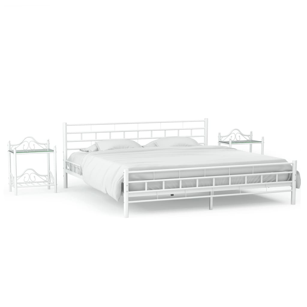 Tämän neliömäisesti muotoillun sängynrungon ja kahden yhteensopivan yöpöydän sarja tulee olemaan omalaatuinen lisä makuuhuoneesi sisustukseen Sängynrunko on valmistettu vankasta teräksestä. Mukana tulee myös sälepohja. Yöpöydät on valmistettu teräksestä ja karkaistusta lasista, mikä tekee niistä vakaat, kestävät ja helppohoitoiset. Tyylikäs muotoilu korostaa sängyn modernia tyyliä. Näiden kaikkien ominaisuuksien ansiosta se takaa sinulle aina mukavat yöunet! Kummassakin yöpöydässä on lisäksi 2 hyllyä, joihin voit laittaa pieniä tavaroita. Kaarevat teräsrakenteet tekevät sängyn tyylistä elegantin. Tämä kalustesarja palvelee sinua erinomaisen hyvin hyödyllisillä ominaisuuksillaan. Toimitus sisältää 1 sängynrungon ja 2 yöpöytää. Makuuhuoneen kalustesarja on helppo koota. Huomioithan, että patja ei sisälly toimitukseen. Väri: valkoinen Sängyn runko: Neliömäinen suunnittelu Materiaali: teräsrunko + vanerisäleet Mitat: 210 x 147 x 76 cm (P x L x K) Sopiva patjan koko: 140 x 200 cm (L x P) (patja ei mukana) Sisältää sälepohjan Yöpöydät: Materiaali: teräs ja karkaistu lasi Mitat: 45 x 30,5 x 60 cm (L x S x K) Karkaistun lasin paksuus: 5 mm Kaksi hyllyä Toimitus sisältää 1 sängynrungon ja 2 yöpöytää