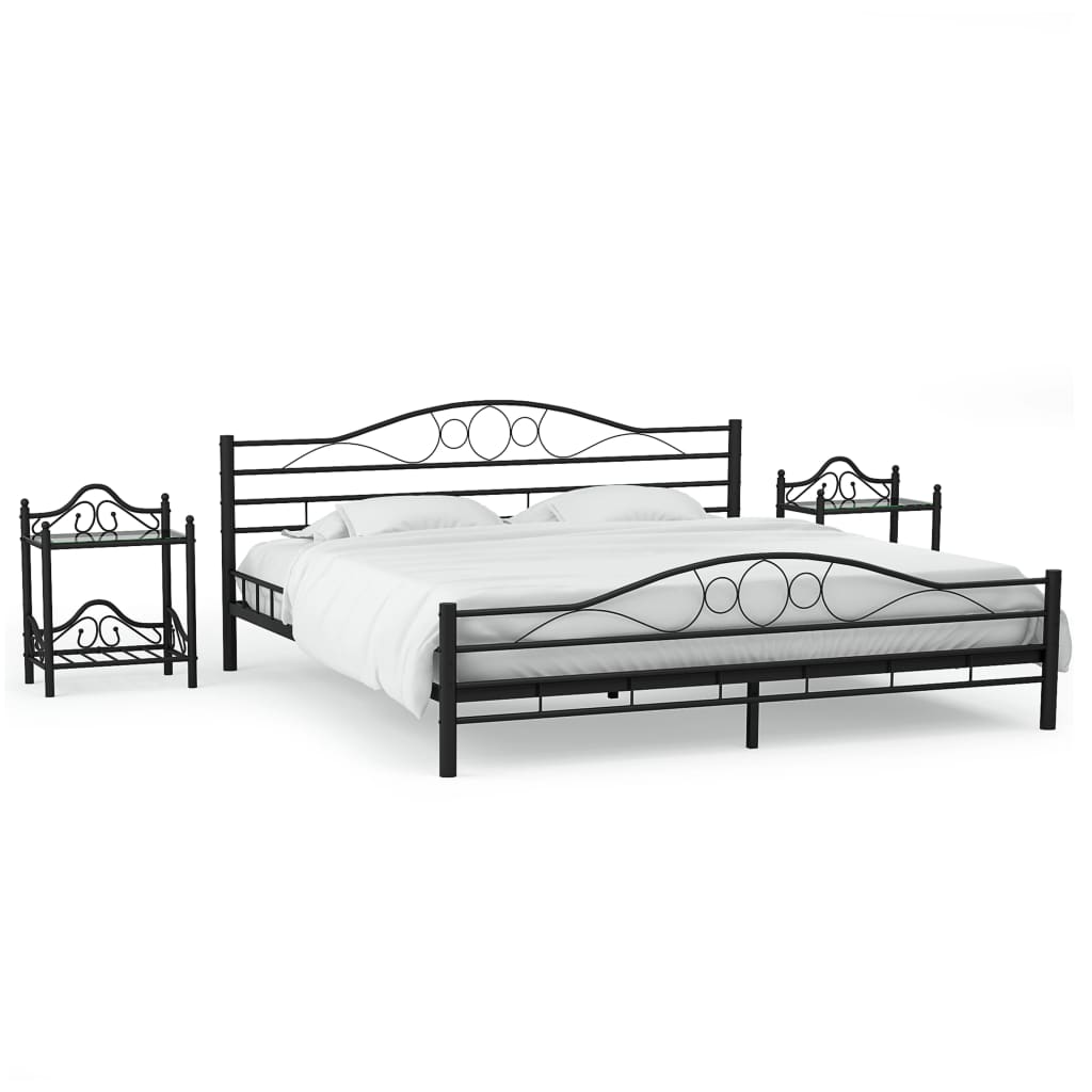 Tämän kaarevasti muotoillun sängynrungon ja kahden yhteensopivan yöpöydän sarja tulee olemaan omalaatuinen lisä makuuhuoneesi sisustukseen Sängynrunko on valmistettu vankasta teräksestä. Mukana tulee myös sälepohja. Yöpöydät on valmistettu teräksestä ja karkaistusta lasista, mikä tekee niistä vakaat, kestävät ja helppohoitoiset. Tyylikäs muotoilu korostaa sängyn modernia tyyliä. Näiden kaikkien ominaisuuksien ansiosta se takaa sinulle aina mukavat yöunet! Kummassakin yöpöydässä on lisäksi 2 hyllyä, joihin voit laittaa pieniä tavaroita. Kaarevat teräsrakenteet tekevät sängyn tyylistä elegantin. Tämä kalustesarja palvelee sinua erinomaisen hyvin hyödyllisillä ominaisuuksillaan. Toimitus sisältää 1 sängynrungon ja 2 yöpöytää. Makuuhuoneen kalustesarja on helppo koota. Huomioithan, että patja ei sisälly toimitukseen. Väri: musta Sängynrunko Kaareva muotoilu Materiaali: teräsrunko + vanerisäleet Mitat: 210 x 167 x 85 cm (P x L x K) Sopiva patjan koko: 160 x 200 cm (L x P) (patja ei sisälly tilaukseen) Sisältää sälepohjan Yöpöydät: Materiaali: teräs ja karkaistu lasi Mitat: 45 x 30,5 x 60 cm (L x S x K) Karkaistun lasin paksuus: 5 mm Kaksi hyllyä Toimitus sisältää 1 sängynrungon ja 2 yöpöytää