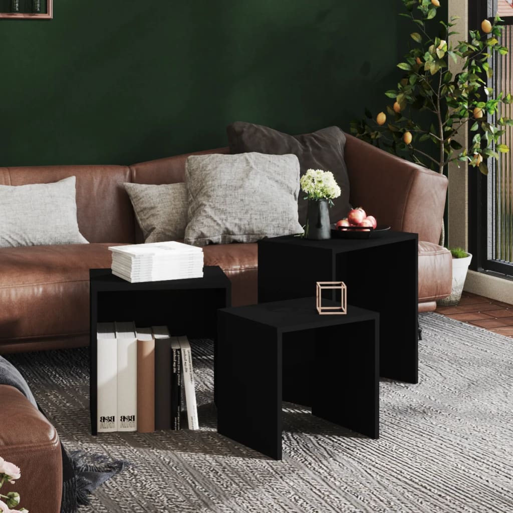 Tämä tyylikäs sohvapöytäsarja on suunniteltu käytännöllisyys ja luotettavuus mielessä. Sarjassa on kolme erikokoista sohvapöytää, joten ne täyttävät eri tarpeet. Pöytäsarja on monipuolinen ja sitä voidaan käyttää makuhuoneessa yöpöytänä, sivupöytänä olohuoneessa ja toimistossa, se toimii myös sohvapöytänä. Voit käyttää niitä erikseen tai pinota ne yhteen tilan säästämiseksi. Kaikkien sarjapöytien puhdistus käy helposti kostealla liinalla. Väri: musta Materiaali: lastulevy Suuren pöydän mitat: 46 x 30 x 50 cm (P x L x K) Keskikokoisen pöydän mitat: 40 x 30 x 43 cm (P x L x K) Pienen pöydän mitat: 35 x 30 x 36 cm (P x L x K) Asennus vaaditaan: kyllä Toimitus sisältää: 1 x suuri pöytä 1 x keskisuuri pöytä 1 x pieni pöytä